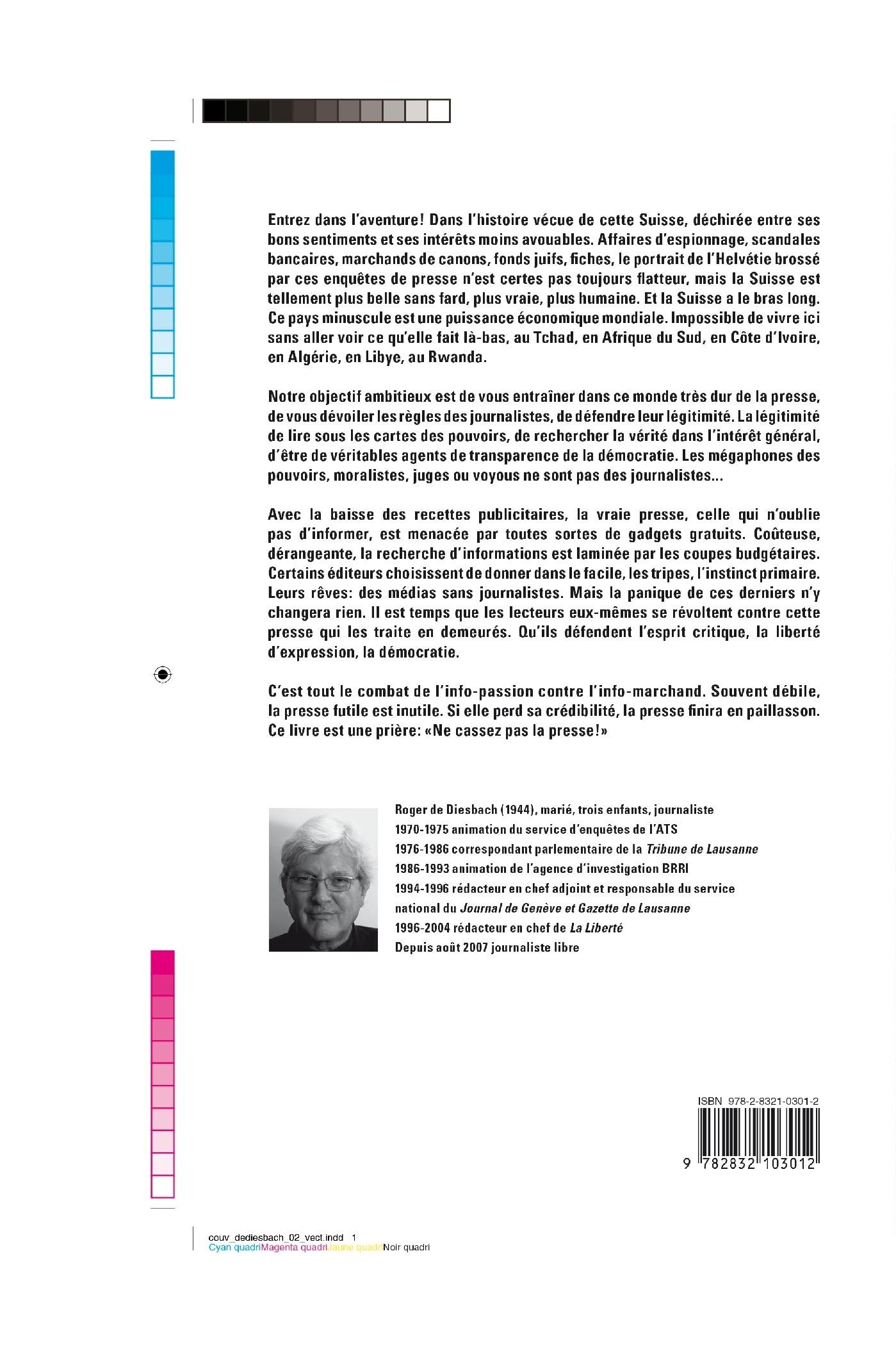 Entrez dans l'aventure! Dans l'histoire vécue de cette Suisse, déchirée entre ses bons sentiments et ses intérêts moins avouables. Affaires d'espionnage, scandales bancaires, marchands de canons, fonds juifs, fiches, le portrait de l'Helvétie brossé par ces enquêtes de presse n'est certes pas toujours flatteur, mais la Suisse est tellement plus belle sans fard, plus vraie, plus humaine. Et la Suisse a le bras long. Ce pays minuscule est une puissance économique mondiale. Impossible de vivre ici sans aller voir ce qu'elle fait là-bas, au Tchad, en Afrique du Sud, en Cote d'Ivoire, en Algérie, en Libye, au Rwanda. Notre objectif ambitieux est de vous entraîner dans ce monde très dur de la presse, de vous dévoiler les règles des journalistes, de défendre leur légitimité. La légitimité de lire sous les cartes des pouvoirs, de rechercher la vérité dans l'intérêt général, d'être de véritables agents de transparence de la démocratie. Les mégaphones des pouvoirs, moralistes, juges ou voyous ne sont pas des journalistes... Avec la baisse des recettes publicitaires, la vraie presse, celle qui n'oublie pas d'informer, est menacée par toute sorte de gadgets gratuits. Coûteuse, dérangeante, la recherche d'informations est laminée par les coupes budgétaires. Certains éditeurs choisissent de donner dans le facile, les tripes, l'instinct primaire. Leurs rêves: des médias sans journalistes. Mais la panique de ces derniers n'y changera rien. Il est temps que les lecteurs eux-mêmes se révoltent contre cette presse qui les traite en demeurés. Qu'ils défendent l'esprit critique, la liberté d'expression, la démocratie. C'est tout le combat de l'info-passion contre l'info-marchand. Souvent débile, la presse futile est inutile. Si elle perd sa crédibilité, la presse finira en paillasson. Ce livre est une prière: "Ne cassez pas la presse!"