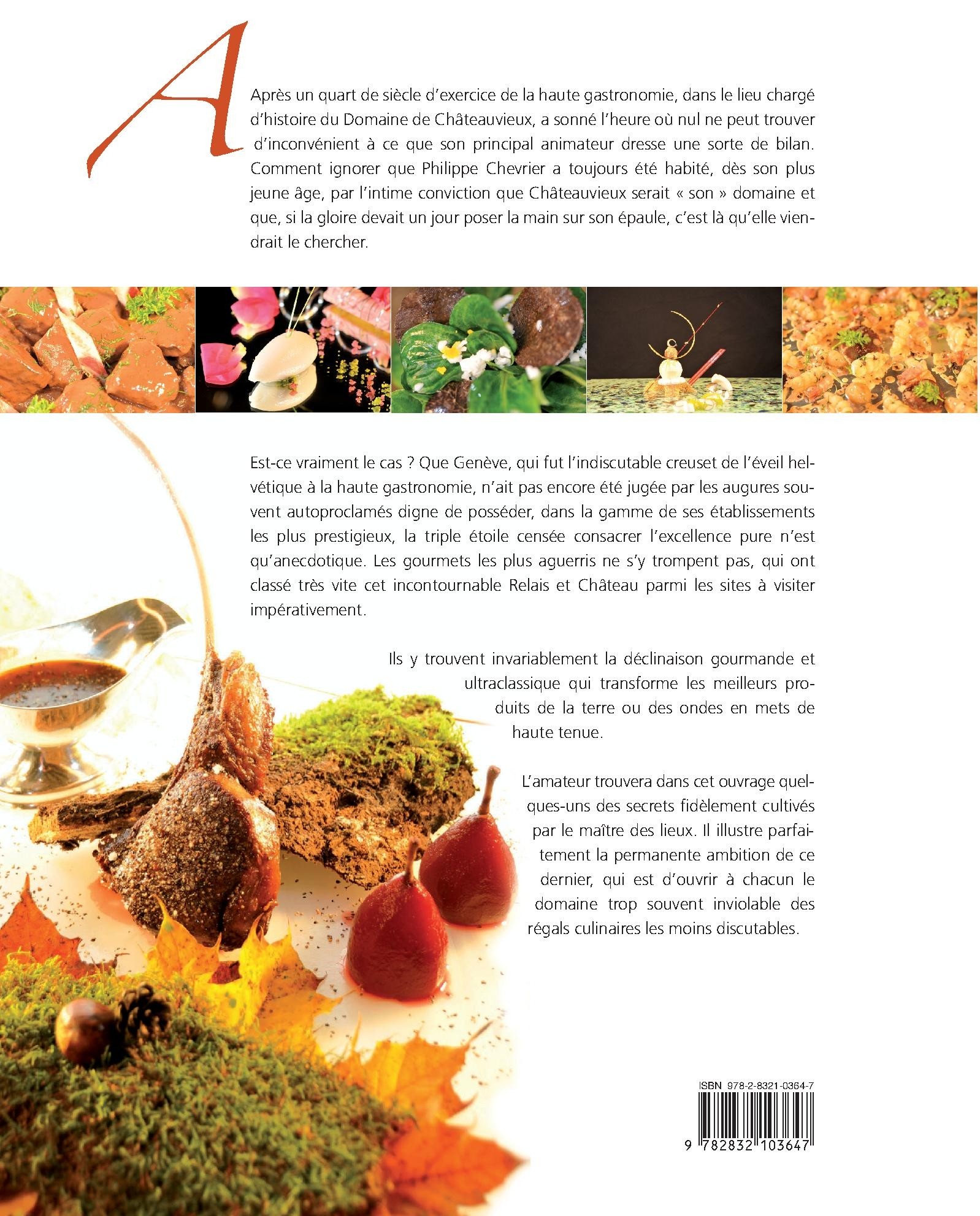 Après un quart de siècle d'exercice de la haute gastronomie, dans le lieu chargé d'histoire du Domaine de Châteauvieux, a sonné l'heure où nul ne peut trouver d'inconvénient à ce que son principal animateur dresse une sorte de bilan. Comment ignorer que Philippe Chevrier a toujours été habité, dès son plus jeune âge, par l'intime conviction que Châteauvieux serait " son " domaine et que, si la gloire devait un jour poser la main sur son épaule, c'est là qu'elle viendrait le chercher ? Est-ce vraiment le cas ? Que Genève, qui fut l'indiscutable creuset de l'éveil helvétique à la haute gastronomie, n'ait pas encore été jugée par les augures souvent autoproclamés digne de posséder, dans la gamme de ses établissements les plus prestigieux, la triple étoile censée consacrer l'excellence pure n'est qu'anecdotique. Les gourmets les plus aguerris ne s'y trompent pas, qui ont classé très vite cet incontournable Relais et Château parmi les sites à visiter impérativement. Ils y trouvent invariablement la déclinaison gourmande et ultraclassique qui transforme les meilleurs produits de la terre ou des ondes en mets de haute tenue. L'amateur trouvera dans cet ouvrage quelques-uns des secrets fidèlement cultivés par le maître des lieux. Il illustre parfaitement la permanente ambition de ce dernier, qui est d'ouvrir à chacun le domaine trop souvent inviolable des régals culinaires les moins discutables.