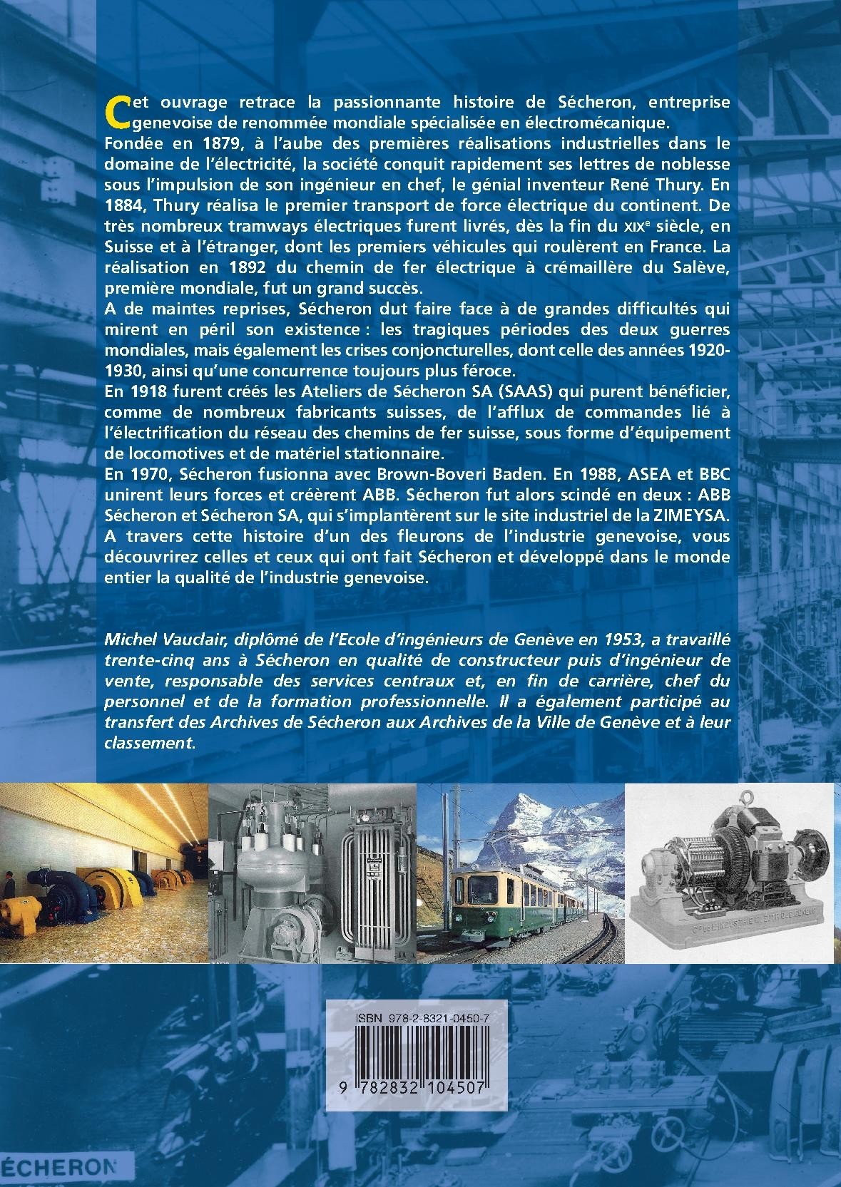 Cet ouvrage retrace la passionnante histoire de Sécheron, entreprise genevoise de renommée mondiale spécialisée en électromécanique. Fondée en 1879, à l`aube des premières réalisations industrielles dans le domaine de l`électricité, la société conquit rapidement ses lettres de noblesse sous l`impulsion de son ingénieur en chef, le génial inventeur René Thury. En 1884, Thury réalisa le premier transport de force électrique du continent. De très nombreux tramways électriques furent livrés, dès la fin du XIXe siècle, en Suisse et à l`étranger, dont les premiers véhicules qui roulèrent en France. La réalisation en 1892 du chemin de fer électrique à crémaillère du Salève, première mondiale, fut un grand succès. A de maintes reprises, Sécheron dut faire face à de grandes difficultés qui mirent en péril son existence : les tragiques périodes des deux guerres mondiales, mais également les crises conjoncturelles, dont celle des années 1920- 1930, ainsi qu`une concurrence toujours plus féroce. En 1918 furent créés les Ateliers de Sécheron SA (SAAS) qui purent bénéficier, comme de nombreux fabricants suisses, de l`afflux de commandes lié à l`électrification du réseau des chemins de fer suisse, sous forme d`équipement de locomotives et de matériel stationnaire. En 1970, Sécheron fusionna avec Brown-Boveri Baden. En 1988, ASEA et BBC unirent leurs forces et créèrent ABB. Sécheron fut alors scindé en deux : ABB Sécheron et Sécheron SA, qui s`implantèrent sur le site industriel de la ZIMEYSA. A travers cette histoire d`un des fleurons de l`industrie genevoise, vous découvrirez celles et ceux qui ont fait Sécheron et développé dans le monde entier la qualité de l`industrie genevoise. Michel Vauclair, diplômé de l`École d`ingénieurs de Genève en 1953, a travaillé trente-cinq ans à Sécheron en qualité de constructeur puis d`ingénieur de vente, responsable des services centraux et, en fin de carrière, chef du personnel et de la formation professionnelle. Il a également participé au transfert des Archives de Sécheron aux Archives d
