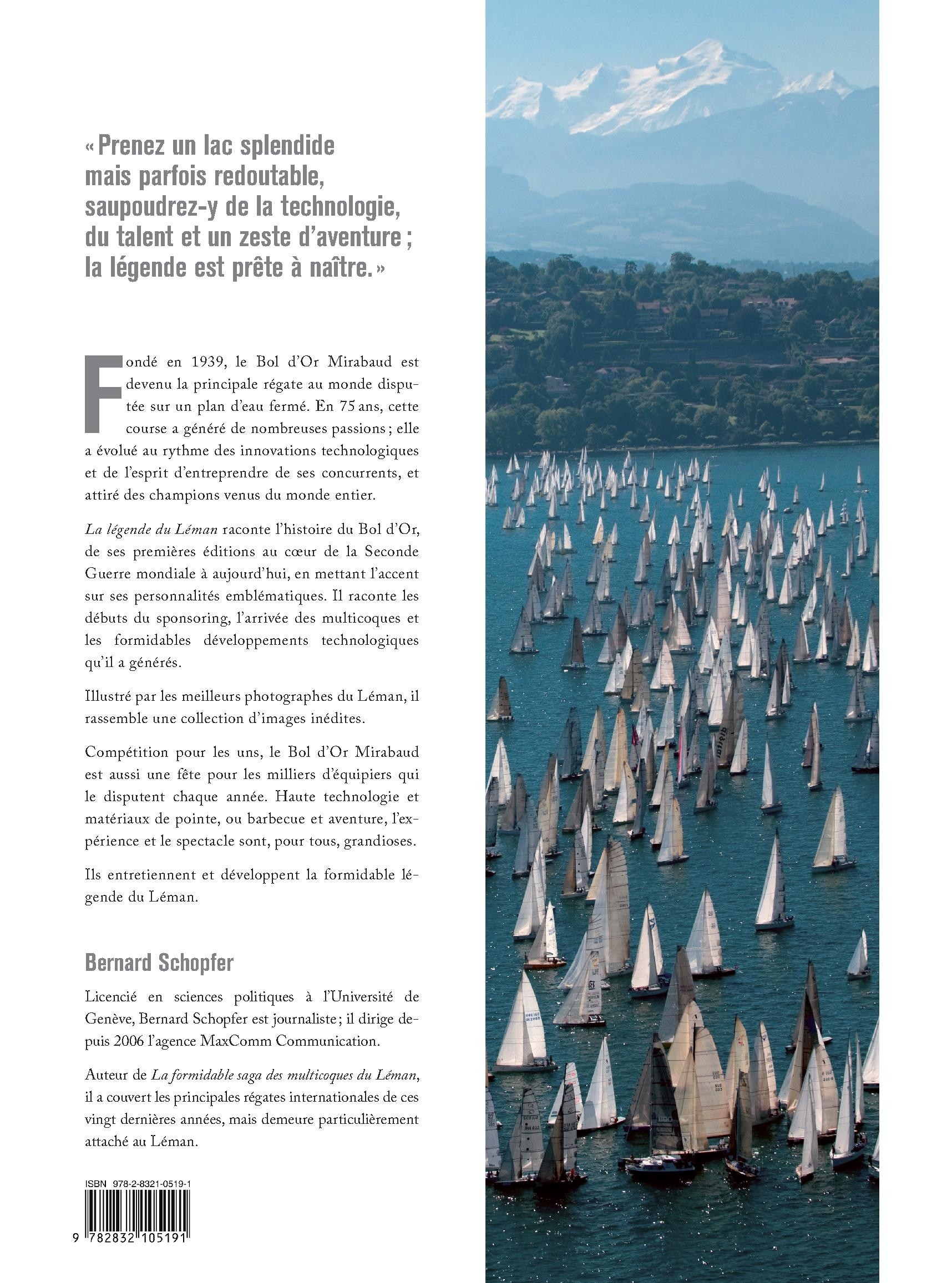 Fondé en 1939, le Bol d’Or Mirabaud est devenu la plus importante régate au monde disputée sur un plan d’eau fermé. En 75 ans, cette course à nulle autre pareille a généré de très nombreuses passions ; elle a évolué au rythme des innovations technologiques et de l’esprit d’entreprendre de ses concurrents, et attiré des champions venus du monde entier. La légende du Léman situe le Bol d’Or Mirabaud dans sa perspective historique. Il décrit les premières éditions de la course, au cœur de la Seconde Guerre mondiale, et met l’accent sur ses personnalités emblématiques. Richement illustré, le récit décrit les nombreuses péripéties qui ont forgé son histoire. Il relate les débuts du sponsoring, l’arrivée des multicoques et les formidables développements technologiques qu’il a générés. Compétition pour les uns, le Bol d’Or Mirabaud est aussi une fête pour les centaines d’équipiers qui le disputent chaque année. Haute technologie et matériaux de pointe, ou barbecue et aventure, l’expérience et le spectacle sont, pour tous, grandioses. Ils entretiennent et développent la formidable légende du Léman. 4 Licencié en sciences politiques à l’Université de Genève, Bernard Schopfer est journaliste ; il a notamment participé au lancement du Nouveau Quotidien et travaillé à la Télévision Suisse Romande. Passionné de voile, et amoureux du Léman, il a couvert les principales régates de ces vingt dernières années, sur le lac et dans le monde entier, en tant que journaliste et réalisateur TV, puis en qualité de responsable de la communication pour des projets d’envergure internationale, avant de fonder l’agence MaxComm Communication en 2006. Il est l’auteur de La formidable saga des multicoques du Léman.