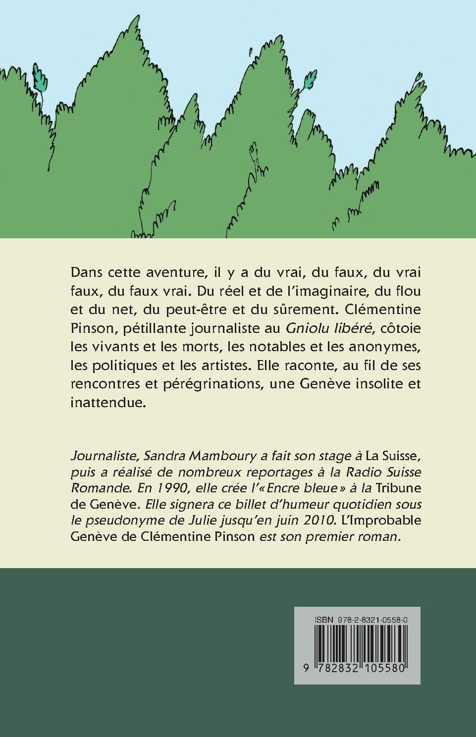 Dans cette aventure, il y a du vrai, du faux, du vrai faux, du faux vrai. Du réel et de l’imaginaire, du flou et du net, du peut-être et du sûrement. Clémentine Pinson, pétillante journaliste au « Gniolu libéré », côtoie les vivants et les morts, les notables et les anonymes, les politiques et les artistes. Elle raconte, au fil de ses rencontres et pérégrinations, une Genève insolite et inattendue.