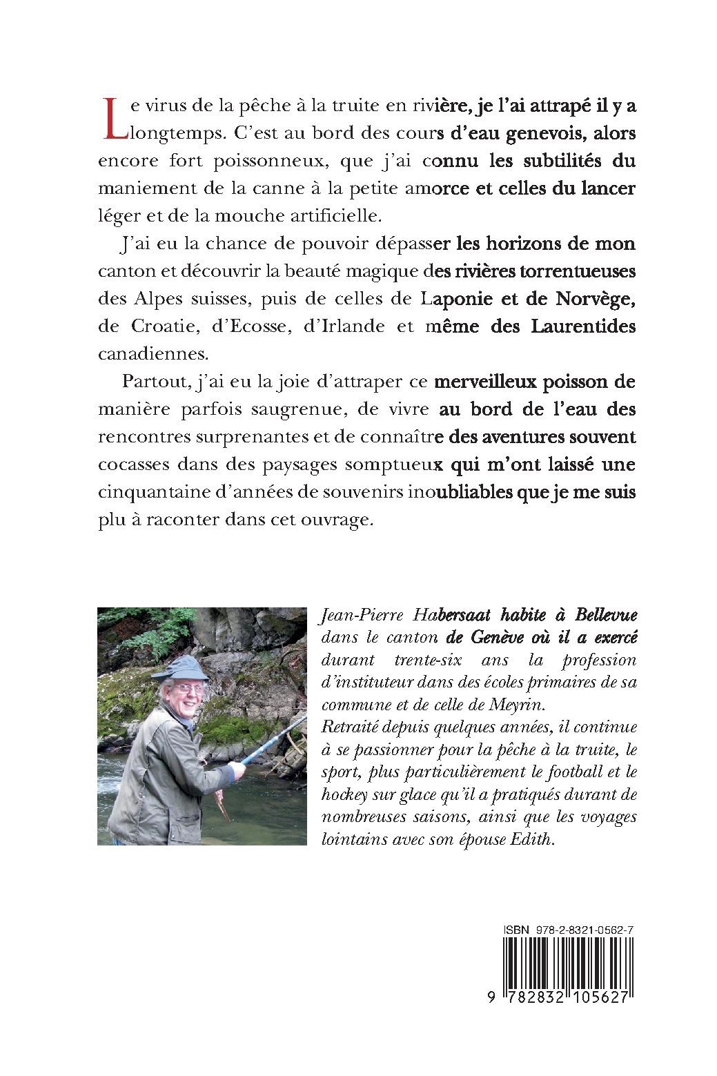 Le virus de la pêche à la truite en rivière, je l’ai attrapé il y a longtemps. C’est au bord des cours d’eau genevois, alors encore fort poissonneux, que j’ai connu les subtilités du maniement de la canne à la petite amorce et celles du lancer léger et de la mouche artificielle. J’ai eu la chance de pouvoir dépasser les horizons de mon canton et découvrir la beauté magique des rivières torrentueuses des Alpes suisses, puis de celles de Laponie et de Norvège, de Croatie, d’Ecosse, d’Irlande et même des Laurentides canadiennes. Partout, j’ai eu la joie d’attraper ce merveilleux poisson de manière parfois saugrenue, de vivre au bord de l’eau des rencontres surprenantes et de connaître des aventures souvent cocasses dans des paysages somptueux qui m’ont laissé une cinquantaine d’années de souvenirs inoubliables que je me suis plu à raconter dans cet ouvrage.