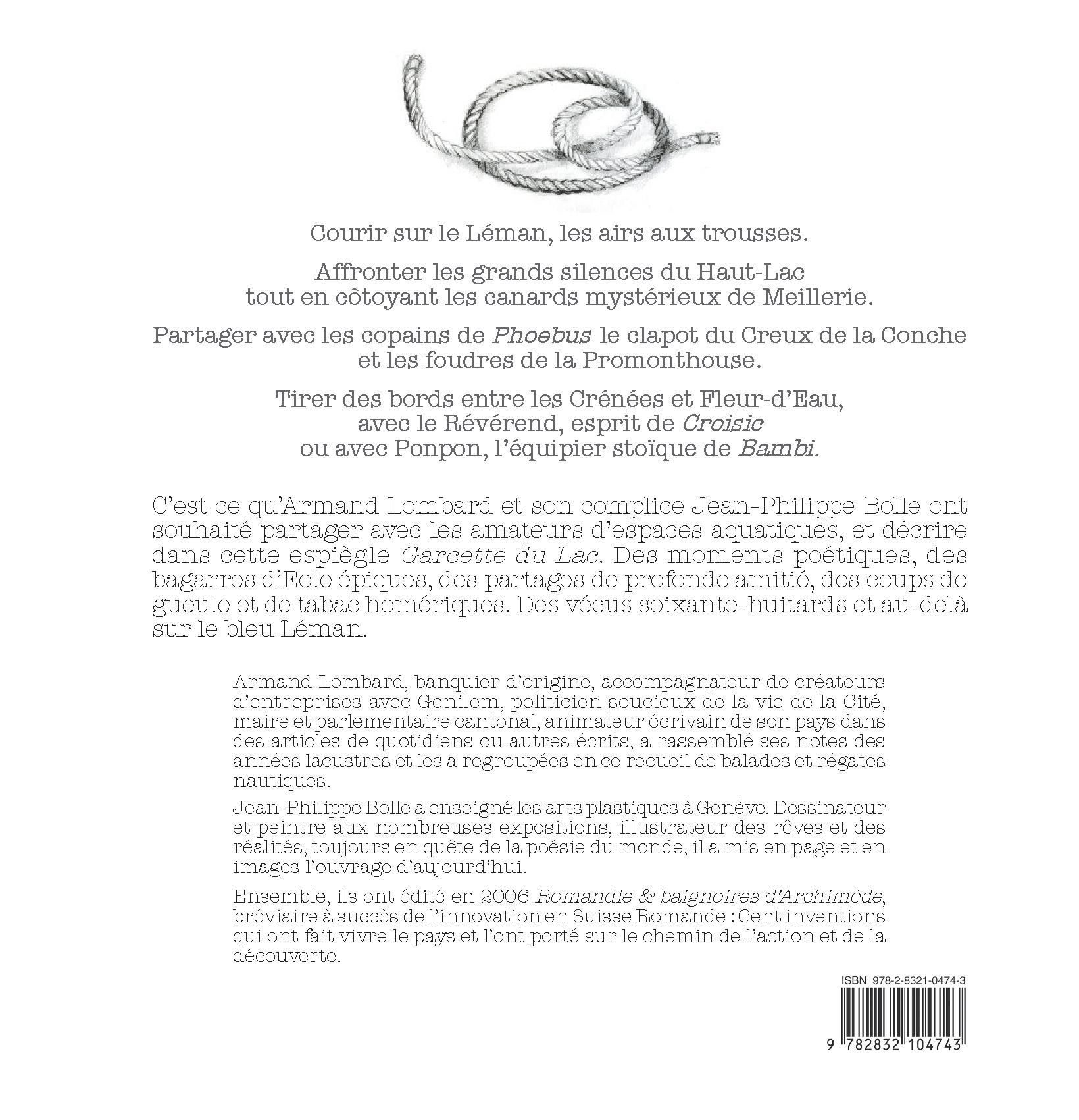 C`est ce qu`Armand Lombard et son complice Jean-Philippe Bolle ont souhaité partager avec les amateurs d`espaces aquatiques, et décrire dans cette espiègle Garcette du Lac. Des moments poétiques, des bagarres d`éoles épiques, des partages de profonde amitié, des coups de gueule et de tabacs homériques. Des vécus soixante-huitards et au-delà sur le bleu Léman. Armand Lombard, banquier d`origine, accompagnateur de créateurs d`entreprises avec Genilem, politicien soucieux de la vie de la Cité, maire et parlementaire cantonal, animateur écrivain de son pays dans des articles de quotidiens ou autres écrits, a rassemblé ses notes des années lacustres et les a regroupées en ce recueil de balades et régates nautiques. Jean-Philippe Bolle a enseigné les arts plastiques à Genève. Dessinateur et peintre aux nombreuses expositions, illustrateur des rêves et des réalités, toujours en quête de la poésie du monde, il a mis en page et en images l`ouvrage d`aujourd`hui. Ensemble, ils ont édité en 2006 " Les Baignoires d`Archimède ", bréviaire à succès de l`innovation en Suisse Romande. 100 inventions qui ont fait vivre le pays et l`ont porté sur le chemin de l`action et de la découverte.