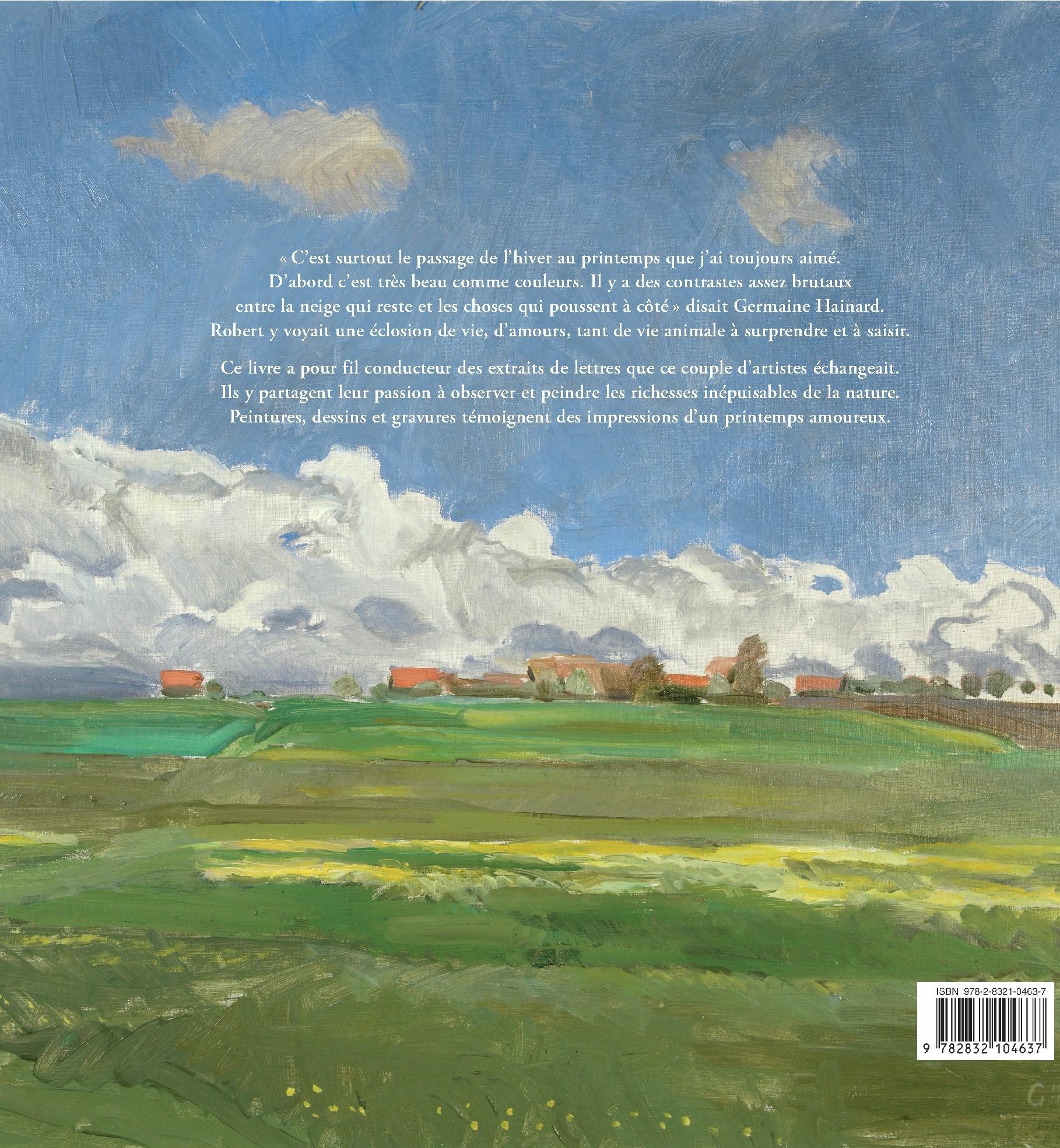 " C`est surtout le passage de l`hiver au printemps que j`ai toujours aimé. D`abord c`est très beau comme couleurs. Il y a des contrastes assez brutaux entre la neige qui reste et les choses qui poussent à côté " disait Germaine Hainard. Robert y voyait une éclosion de vie, d`amours, tant de vie animale à surprendre et à saisir. Ce livre a pour fil conducteur des extraits de lettres que ce couple d`artistes échangeait. Ils y partagent leur passion à observer et peindre les richesses inépuisables de la nature. Peintures, dessins et gravures témoignent des impressions d`un printemps amoureux.