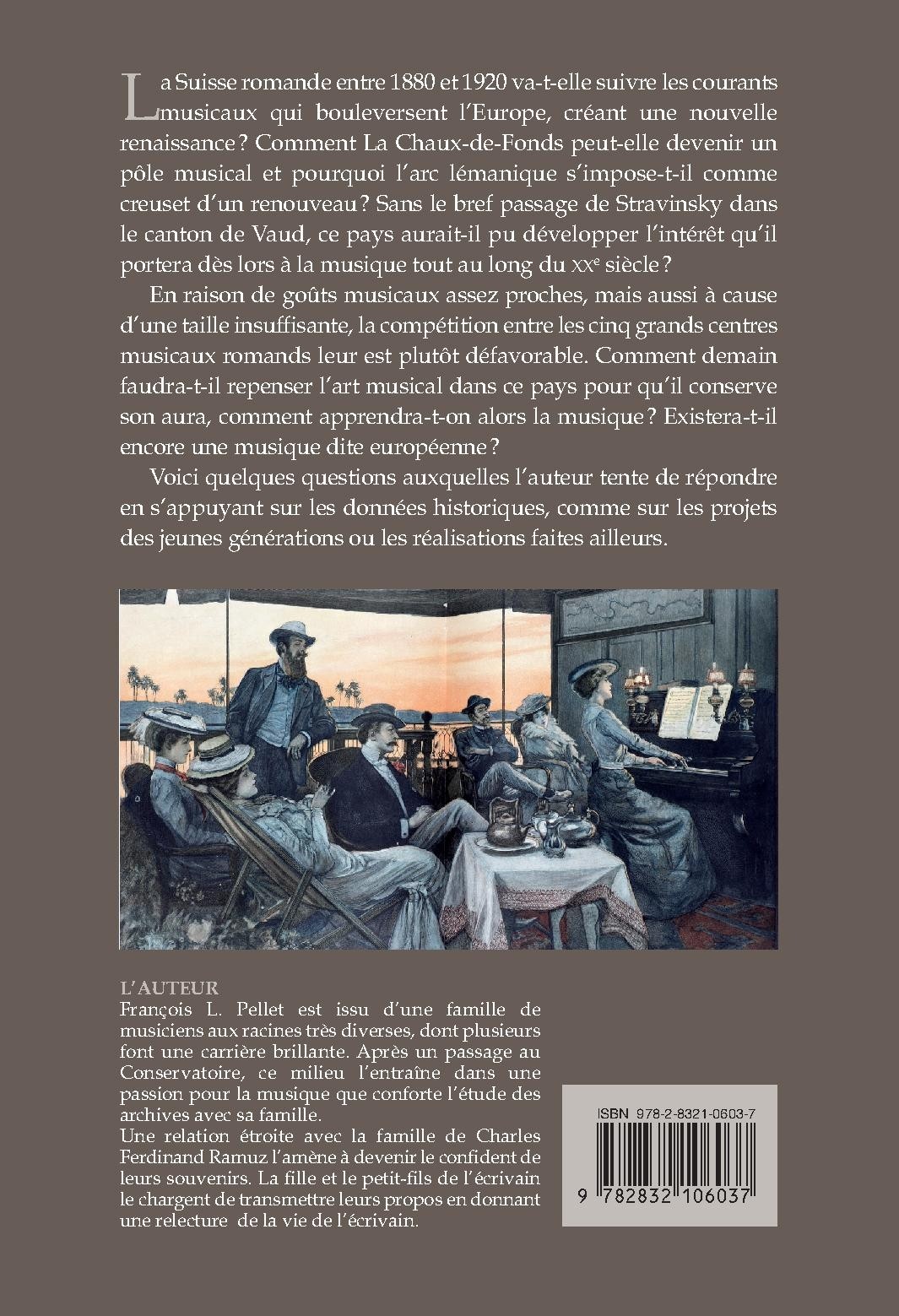 La Suisse romande entre 1880 et 1920 va-t-elle suivre les courants musicaux qui bouleversent l’Europe, créant une nouvelle renaissance? Comment La Chaux-de-Fonds peut- elle devenir un pôle musical et pourquoi l’arc lémanique s’impose-t-il comme creuset d’un renouveau? Sans le bref passage de Strawinsky dans le canton de Vaud, ce pays aurait-il pu développer l’intérêt qu’il portera dès lors à la musique tout au long du XXe siècle? En raison de goûts musicaux assez proches, mais aussi à cause d’une taille insuffisante, la compétition entre les cinq grands centres musicaux romands leur est plutôt défavorable. Comment demain faudra-t-il repenser l’art musical dans ce pays pour qu’il conserve son aura, comment apprendra-t-on alors la musique? Existera-t-il encore une musique dite européenne? Voici quelques questions auxquelles l’auteur tente de répondre en s’appuyant sur les données historiques, comme sur les projets des jeunes générations ou les réalisations faites ailleurs.