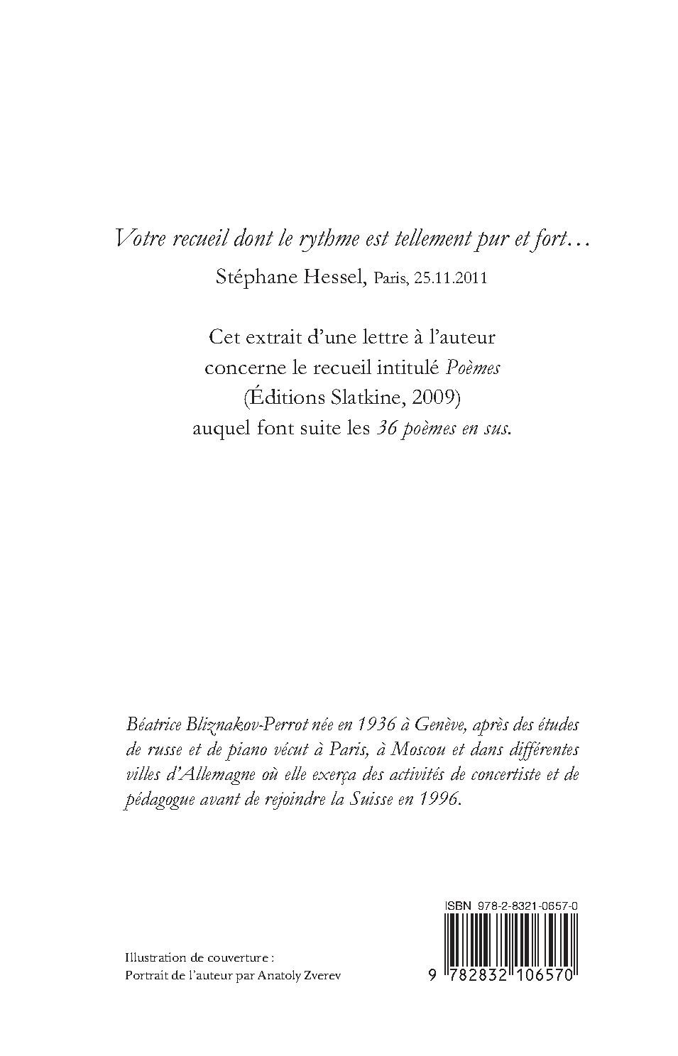 Cet extrait d’une lettre à l’auteur concerne le recueil intitulé Poèmes (Éditions Slatkine, 2009) auxquels font suite les 36 poèmes en sus.