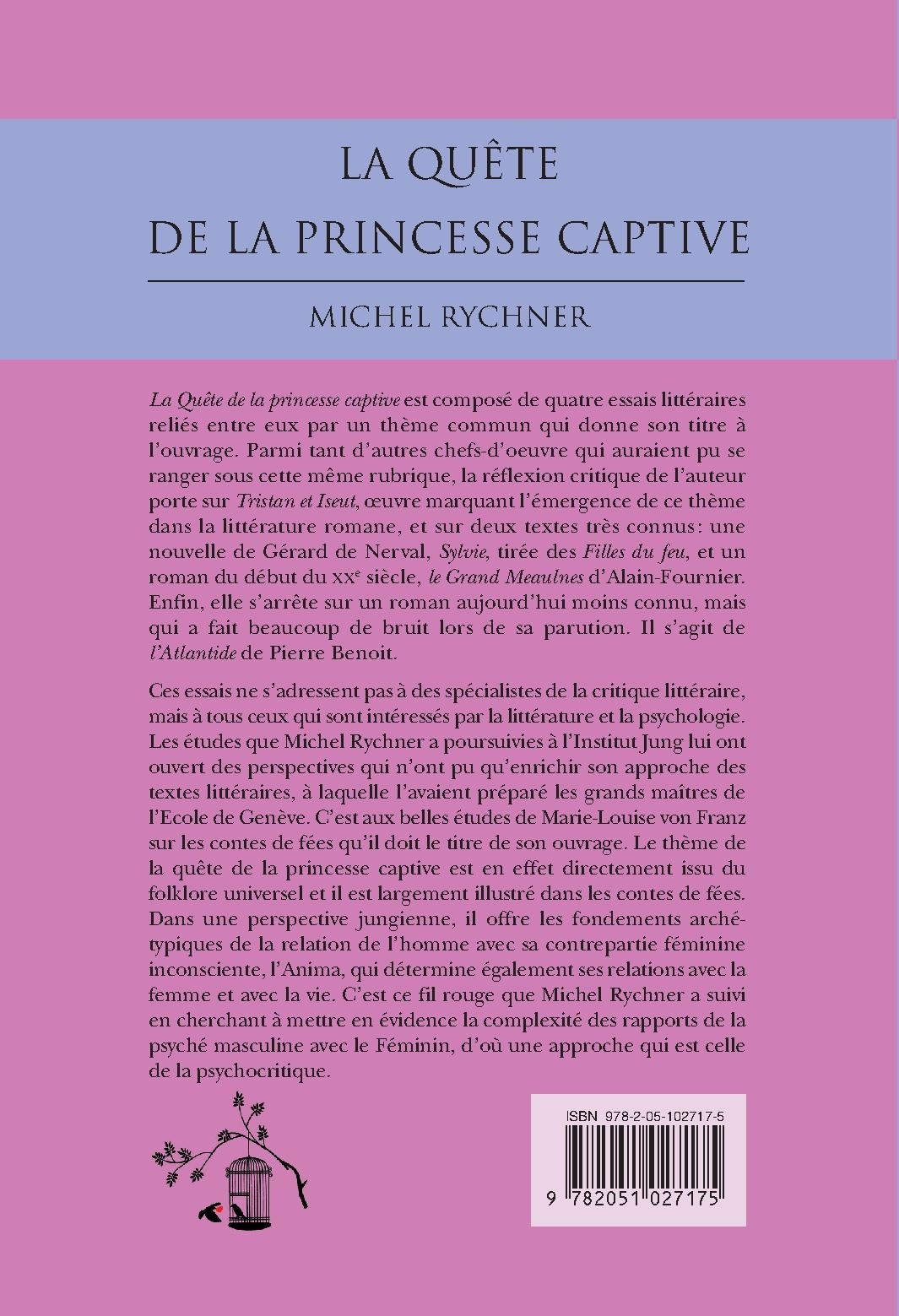 Ces essais ne s’adressent pas à des spécialistes de la critique littéraire, mais à tous ceux qui sont intéressés par la littérature et la psychologie. Les études que Michel Rychner a poursuivies à l’Institut Jung lui ont ouvert des perspectives qui n’ont pu qu’enrichir son approche des textes littéraires, à laquelle l’avaient préparé les grands maîtres de l’Ecole de Genève. C’est aux belles études de Marie-Louise von Franz sur les contes de fées qu’il doit le titre de son ouvrage. Le thème de la quête de la princesse captive est en effet directement issu du folklore universel et il est largement illustré dans les contes de fées. Dans une perspective jungienne, il offre les fondements archétypiques de la relation de l’homme avec sa contrepartie féminine inconsciente, l’Anima, qui détermine également ses relations avec la femme et avec la vie. C’est ce fil rouge que Michel Rychner a suivi en cherchant à mettre en évidence la complexité des rapports de la psyché masculine avec le Féminin, d’où une approche qui est celle de la psychocritique.