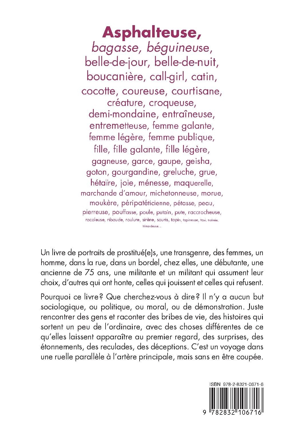 Un livre de portraits de prostitué(e)s, une transgenre, des femmes, un homme, dans la rue, dans un bordel, chez elles, une débutante, une ancienne de 75 ans, une militante et un militant qui assument leur choix, d’autres qui ont honte, celles qui jouissent et celles qui refusent. Pourquoi ce livre ? Que cherchez-vous à dire ? Il n’y a aucun but sociologique, ou politique, ou moral, ou de démonstration. Juste rencontrer des gens et raconter des bribes de vie, des histoires qui sortent un peu de l’ordinaire, avec des choses différentes de ce qu’elles laissent apparaître au premier regard, des surprises, des étonnements, des reculades, des déceptions. C’est un voyage dans une ruelle parallèle à l’artère principale, mais sans en être coupée.