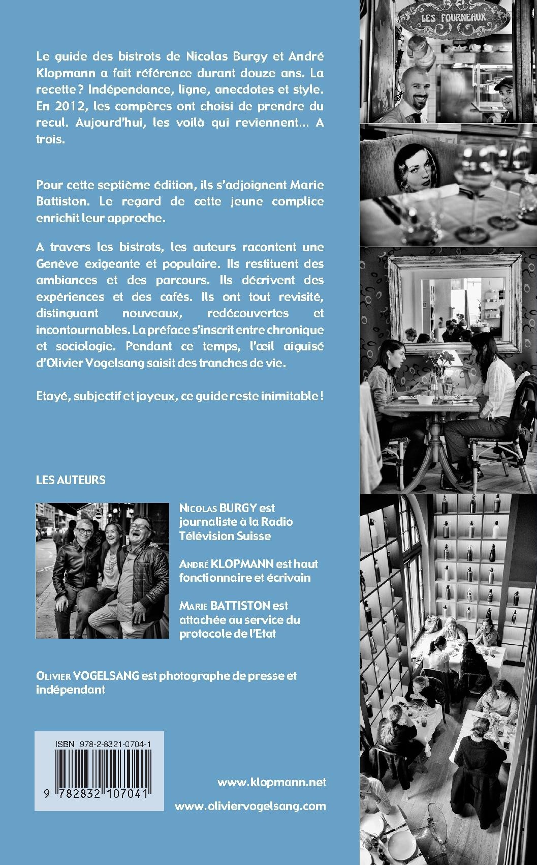 Pour cette septième édition, ils s’adjoignent Marie Battiston. Le regard de cette jeune complice enrichit leur approche. A travers les bistrots, les auteurs racontent une Genève exigeante et populaire. Ils restituent des ambiances et des parcours. Ils décrivent des expériences et des cafés. Ils ont tout revisité, distinguant nouveaux, redécouvertes et incontournables. La préface s’inscrit entre chronique et sociologie. Pendant ce temps, l’œil aiguisé d’Olivier Vogelsang saisit des tranches de vie.