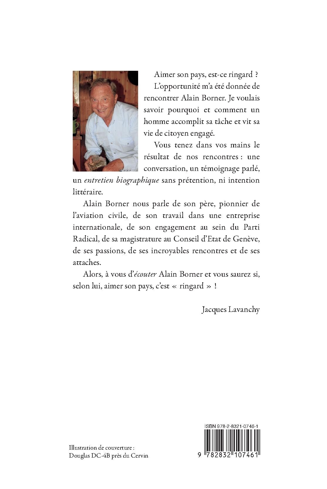 Alain Borner nous parle de son père, pionnier de l’aviation civile, de son travail dans une entreprise internationale, de son engagement au sein du Parti Radical, de sa magistrature au Conseil d’Etat de Genève, de ses passions, de ses incroyables rencontres et de ses attaches.