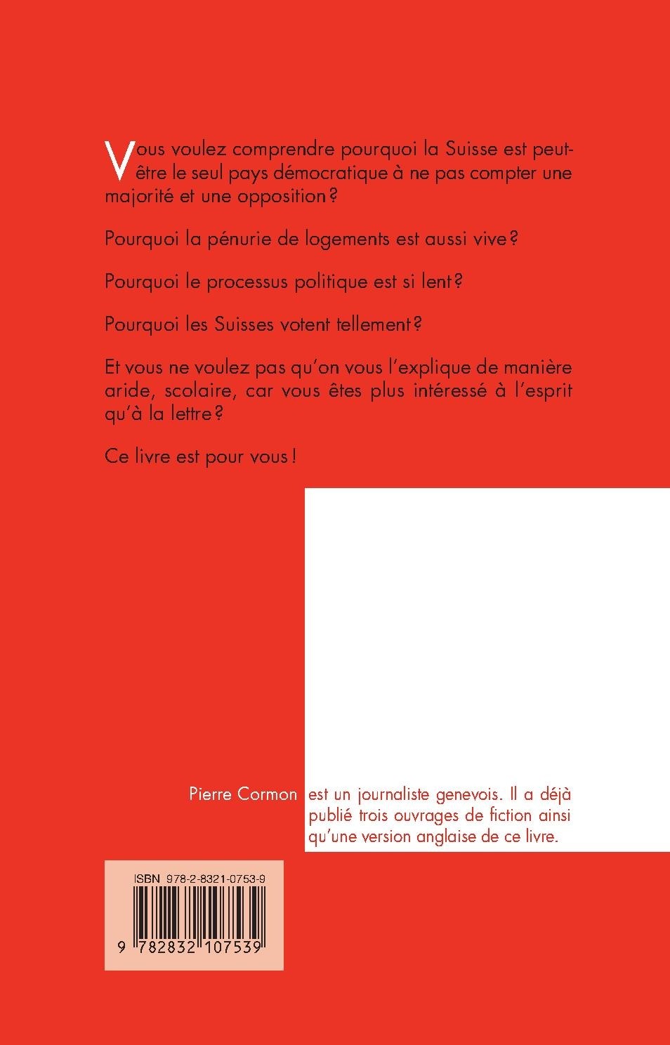 Vous voulez comprendre pourquoi la Suisse est peut-être le seul pays démocratique à ne pas compter une majorité et une opposition ? Pourquoi la pénurie de logements est aussi vive ? Pourquoi le processus politique est si lent ? Pourquoi les Suisses votent tellement ? Et vous ne voulez pas qu’on vous l’explique de manière aride, scolaire, car vous êtes plus intéressé à l’esprit qu’à la lettre ? Ce livre est pour vous !