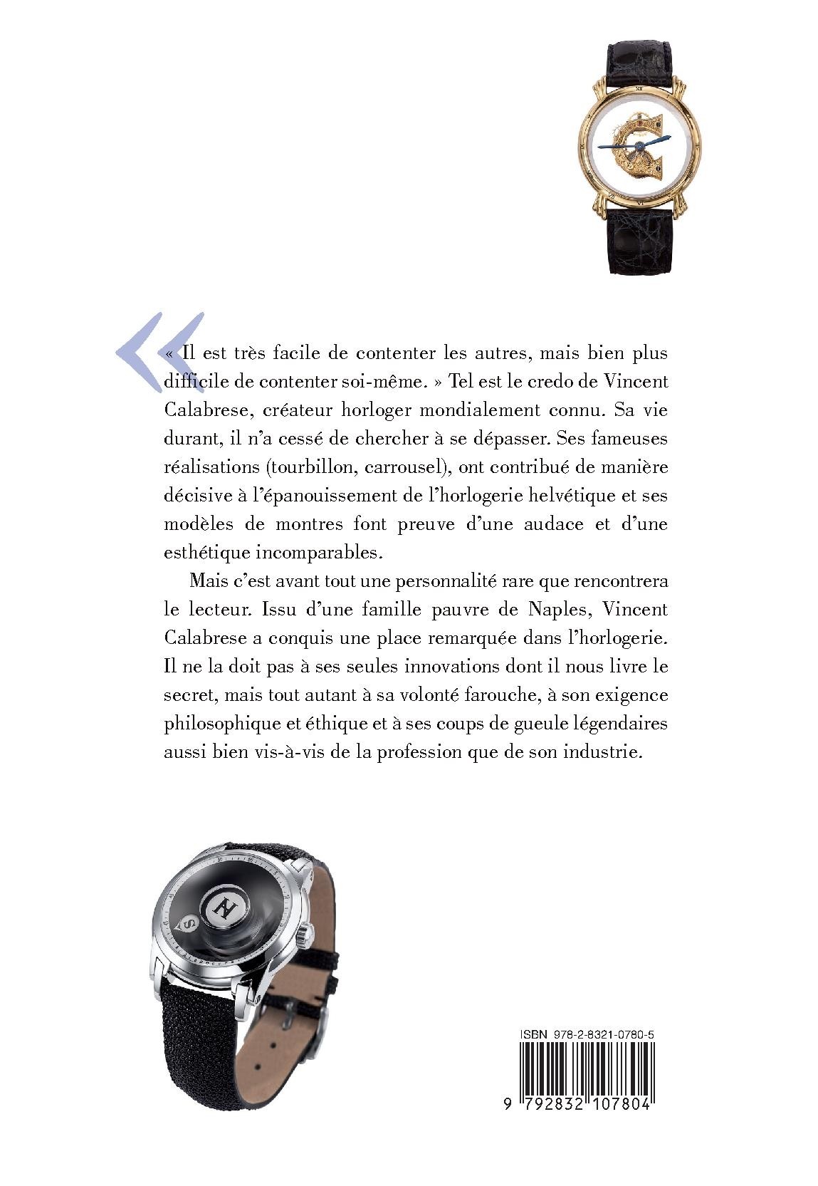 Mais c’est avant tout une personnalité rare que rencontrera le lecteur. Issu d’une famille pauvre de Naples, Vincent Calabrese a conquis une place remarquée dans l’horlogerie. Il ne la doit pas à ses seules innovations dont il nous livre le secret, mais tout autant à sa volonté farouche, à son exigence philosophique et éthique et à ses coups de gueule légendaires aussi bien vis-à-vis de la profession que de son industrie.