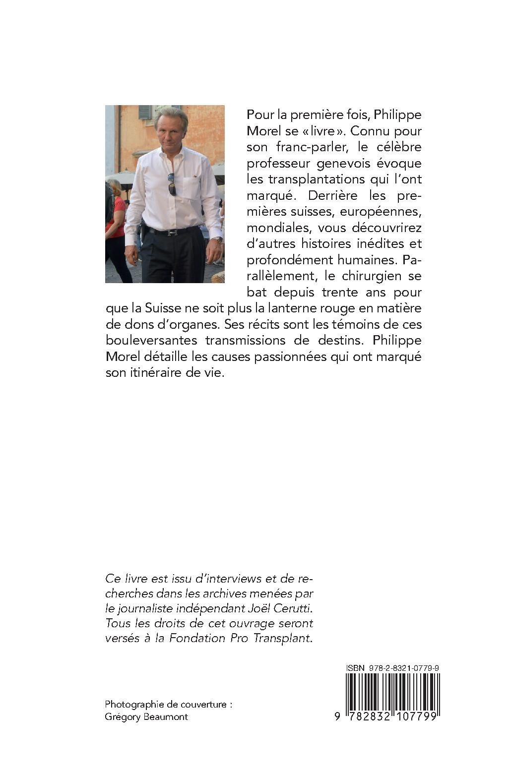 Pour la première fois, Philippe Morel se « livre ». Connu pour son franc-parler, le célèbre professeur genevois évoque les transplantations qui l’ont marqué. Derrière les premières suisses, européennes, mondiales, vous découvrirez d’autres histoires inédites et profondément humaines. Parallèlement, le chirurgien se bat depuis trente ans pour que la Suisse ne soit plus la lanterne rouge en matière de dons d’organes. Ses récits sont les témoins de ces bouleversantes transmissions de destins. Philippe Morel détaille les causes passionnées qui ont marqué son itinéraire de vie.