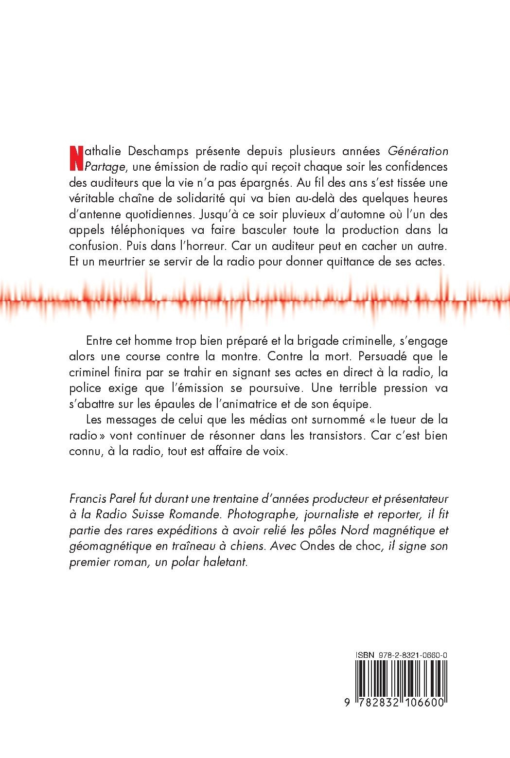 Francis Parel fut durant une trentaine d’années producteur et présentateur à la Radio Suisse Romande. Photographe, journaliste et reporter, il fit partie des rares expéditions à avoir relié les pôles Nord magnétique et géomagnétique en traîneau à chiens. Avec Ondes de choc, il signe son premier roman, un polar haletant.