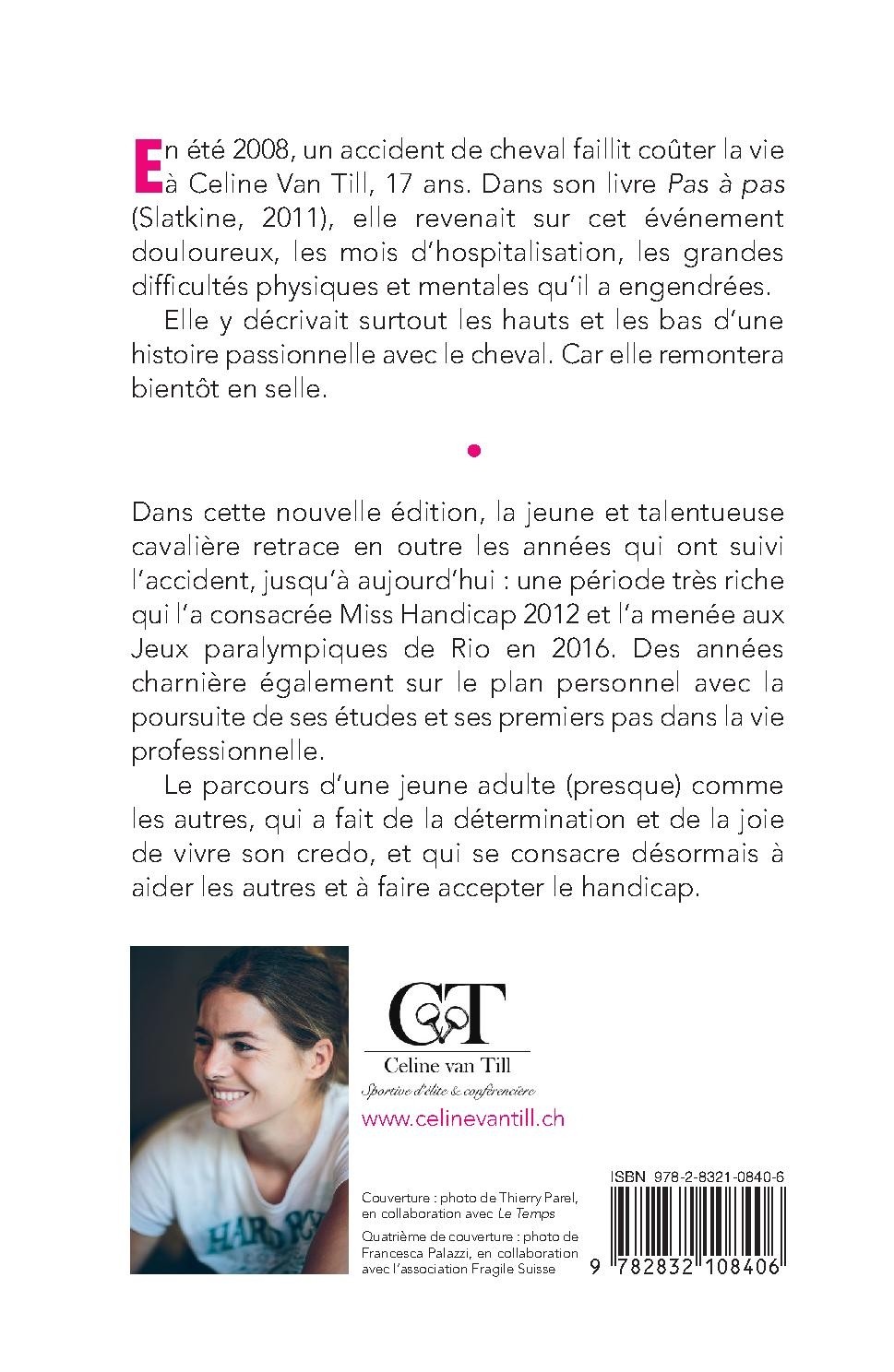 Dans cette nouvelle édition, la jeune et talentueuse cavalière retrace en outre les années qui ont suivi l’accident, jusqu’à aujourd’hui : une période très riche qui l’a consacrée Miss Handicap 2012 et l’a menée aux Jeux paralympiques de Rio en 2016. Des années charnière également sur le plan personnel avec la poursuite de ses études et ses premiers pas dans la vie professionnelle.