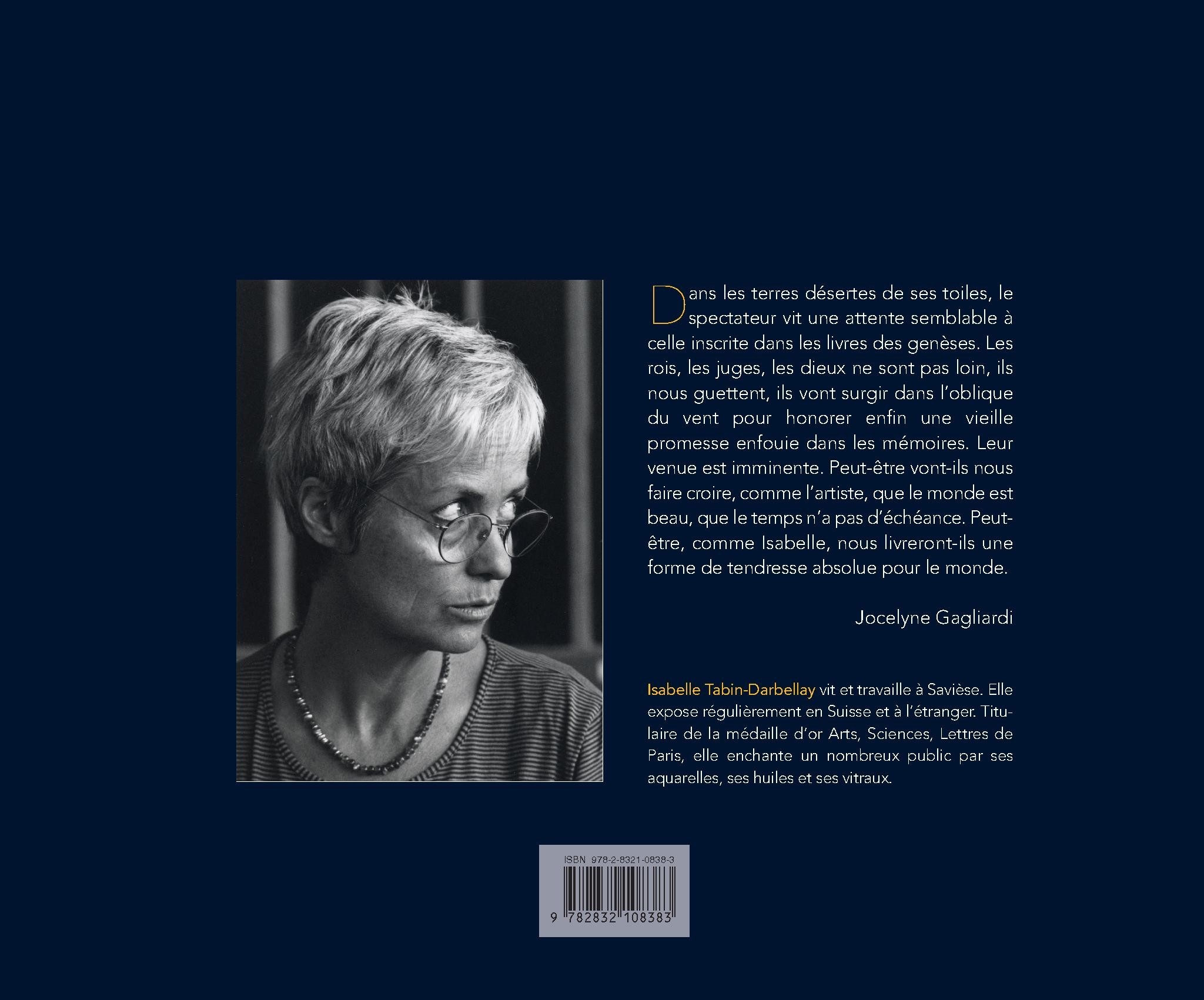 Isabelle Tabin-?Darbellay vit et travaille à Savièse. Elle expose régulièrement en Suisse et à l’étranger. Titulaire de la médaille d’or Arts, Sciences, Lettres de Paris, elle enchante un nombreux public par ses aquarelles, ses huiles et ses vitraux.