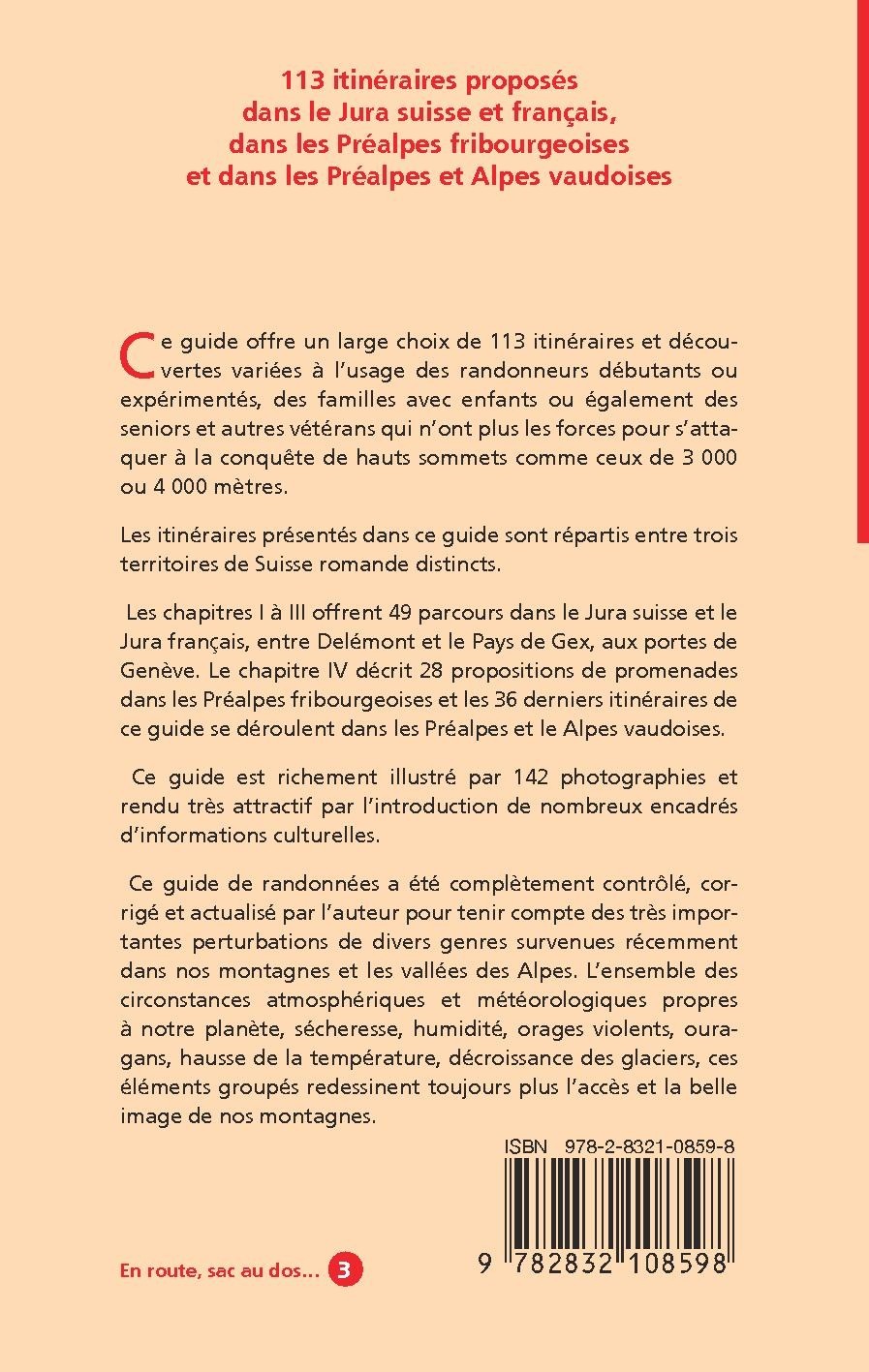 113 itinéraires proposés dans le Jura suisse et français, dans les Préalpes fribourgeoises et dans les Préalpes et Alpes vaudoises