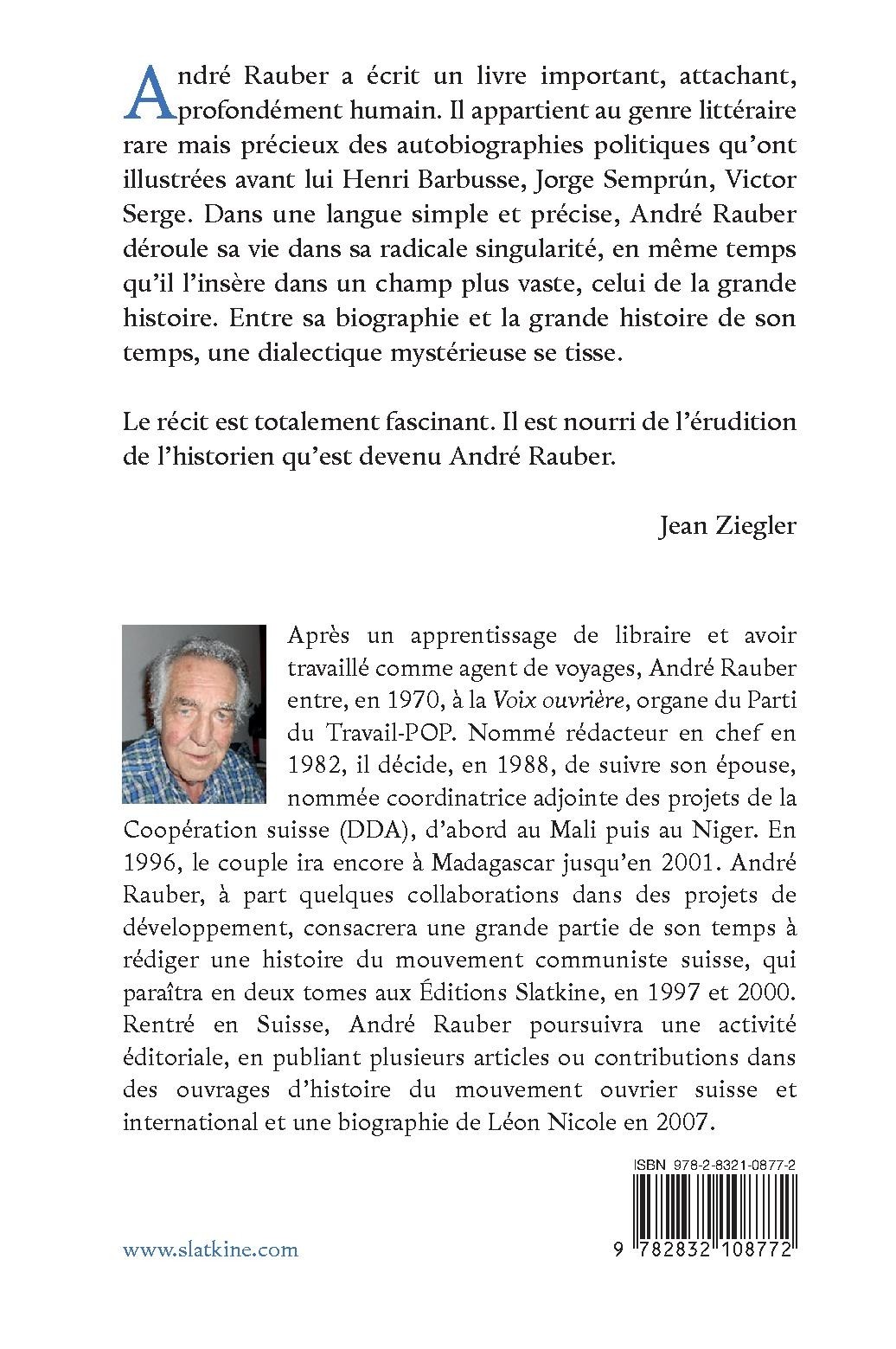 André Rauber a écrit un livre important, attachant, profondément humain. Il appartient au genre littéraire rare mais précieux des autobiographies politiques qu’ont illustrées avant lui Henri Barbusse, Jorge Semprún, Victor Serge. Dans une langue simple et précise, André Rauber déroule sa vie dans sa radicale singularité, en même temps qu’il l’insère dans un champ plus vaste, celui de la grande histoire. Entre sa biographie et la grande histoire de son temps, une dialectique mystérieuse se tisse.Le récit st totalement fascinant. Il est nourri de l’érudition de l’historien qu’est devenu André Rauber.