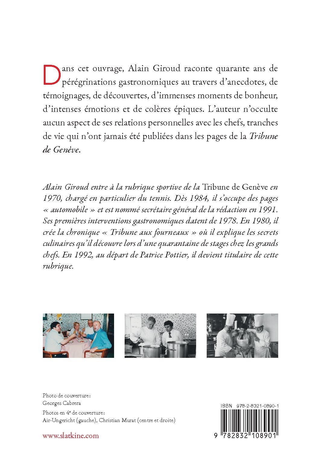 Dans cet ouvrage, Alain Giroud raconte quarante ans de pérégrinations gastronomiques au travers d’anecdotes, de témoignages, de découvertes, d’immenses moments de bonheur, d’intenses émotions et de colères épiques. L’auteur n’occulte aucun aspect de ses relations personnelles avec les chefs, tranches de vie qui n’ont jamais été publiées dans les pages de la Tribune de Genève.