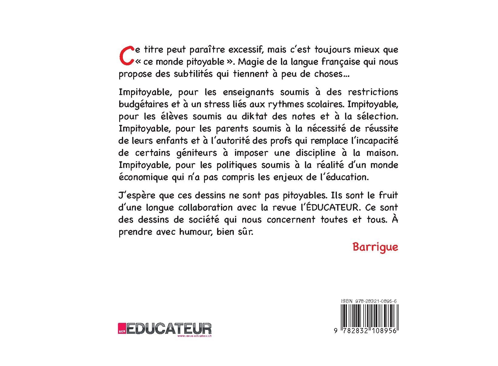 Impitoyable, pour les enseignants soumis à des restrictions budgétaires et à un stress liés aux rythmes scolaires. Impitoyable, pour les élèves soumis au diktat des notes et à la sélection. Impitoyable, pour les parents soumis à la nécessité de réussite de leurs enfants et à l’autorité des profs qui remplace l’incapacité de certains géniteurs à imposer une discipline à la maison. Impitoyable, pour les politiques soumis à la réalité d’un monde économique qui n’a pas compris les enjeux de l’éducation.