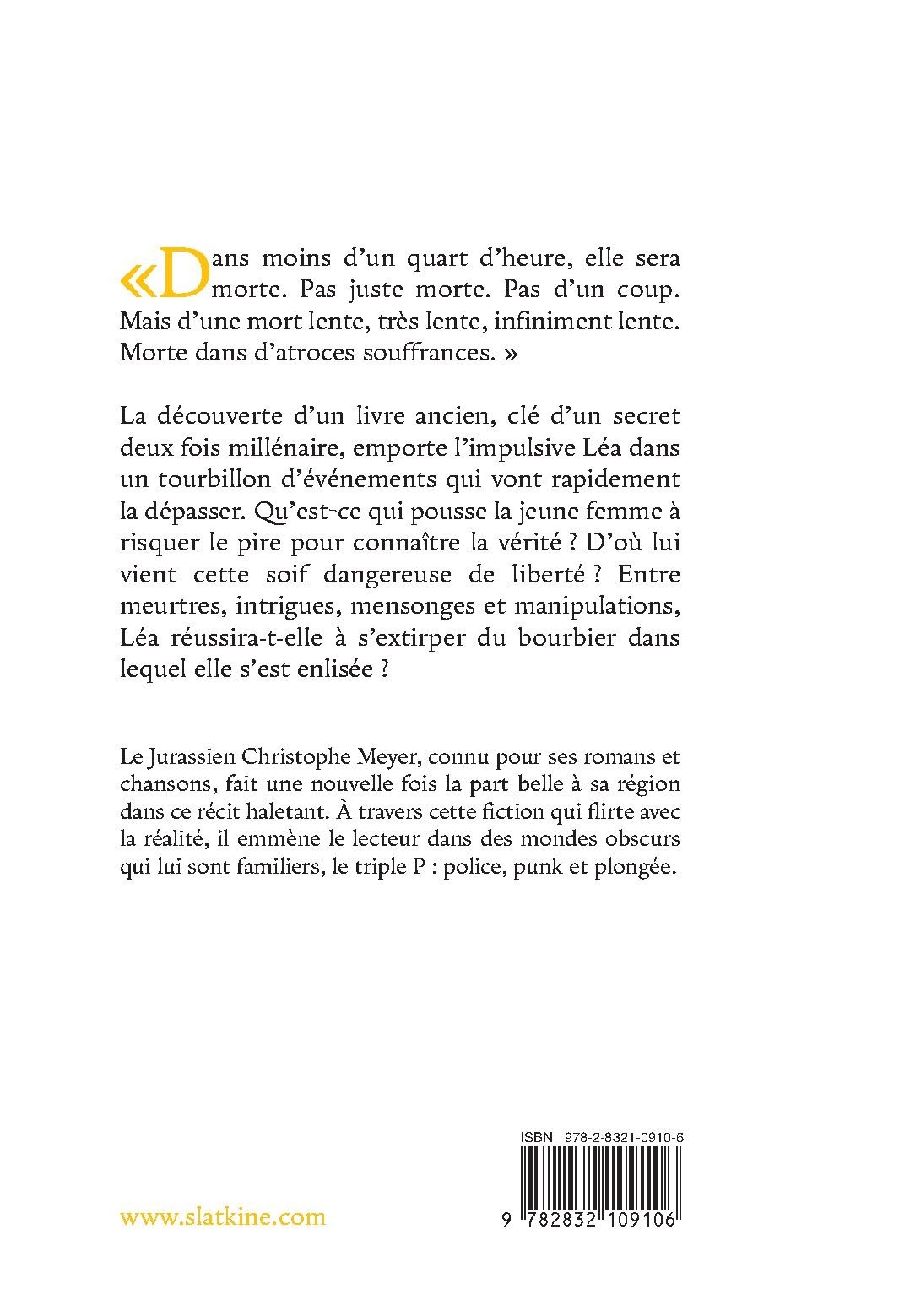 La découverte d’un livre ancien, clé d’un secret deux fois millénaire, emporte l’impulsive Léa dans un tourbillon d’événements qui vont rapidement la dépasser. Qu’est-ce qui pousse la jeune femme à risquer le pire pour connaître la vérité ? D’où lui vient cette soif dangereuse de liberté ? Entre meurtres, intrigues, mensonges et manipulations, Léa réussira-t-elle à s’extirper du bourbier dans lequel elle s’est enlisée ?