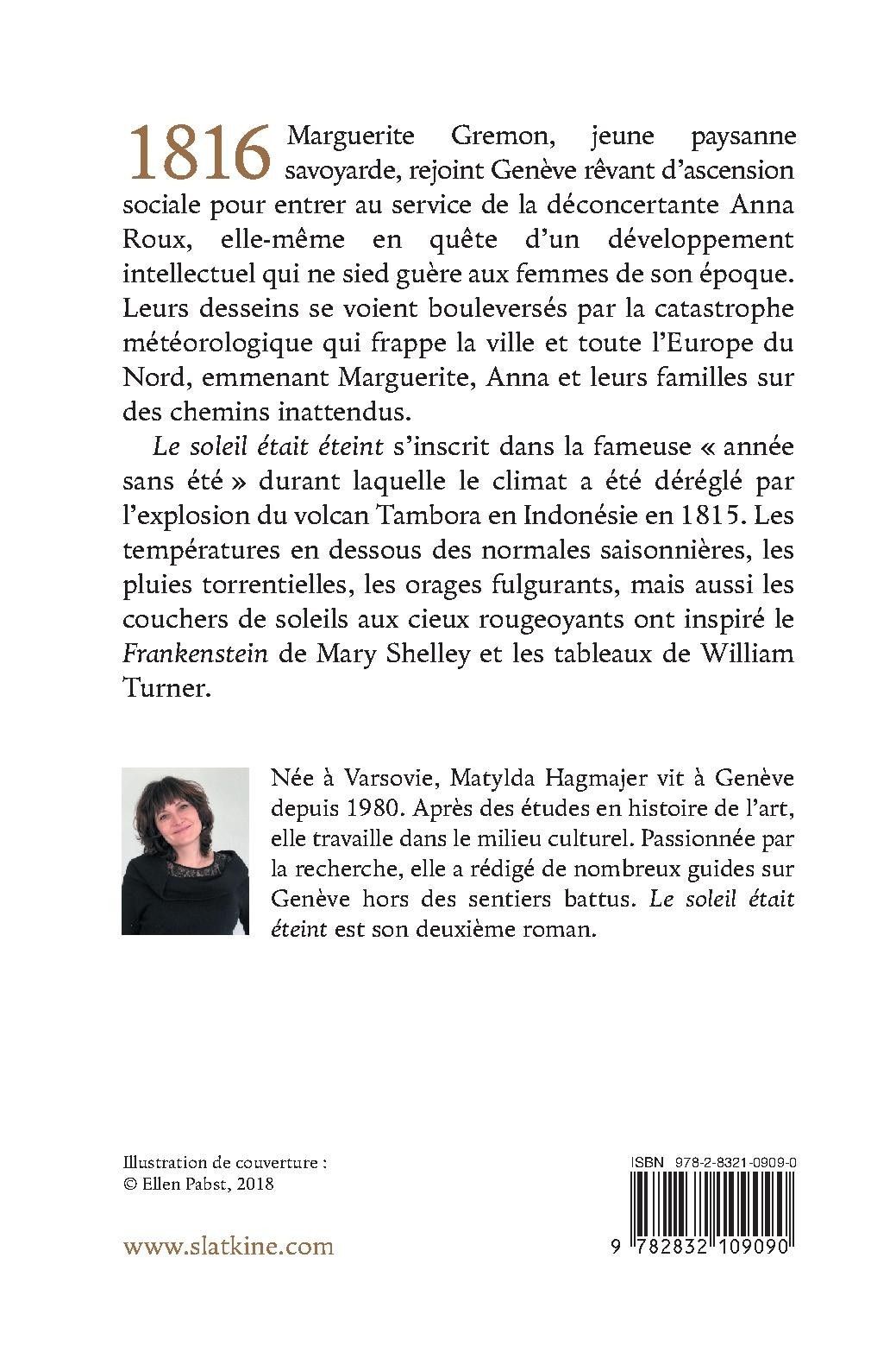 Le soleil était éteint s’inscrit dans la fameuse « année sans été » durant laquelle le climat a été déréglé par l’explosion du volcan Tambora en Indonésie en 1815. Les températures en dessous des normales saisonnières, les pluies torrentielles, les orages fulgurants, mais aussi les couchers de soleil aux cieux rougeoyants ont inspiré le Frankenstein de Mary Shelley et les tableaux de William Turner.