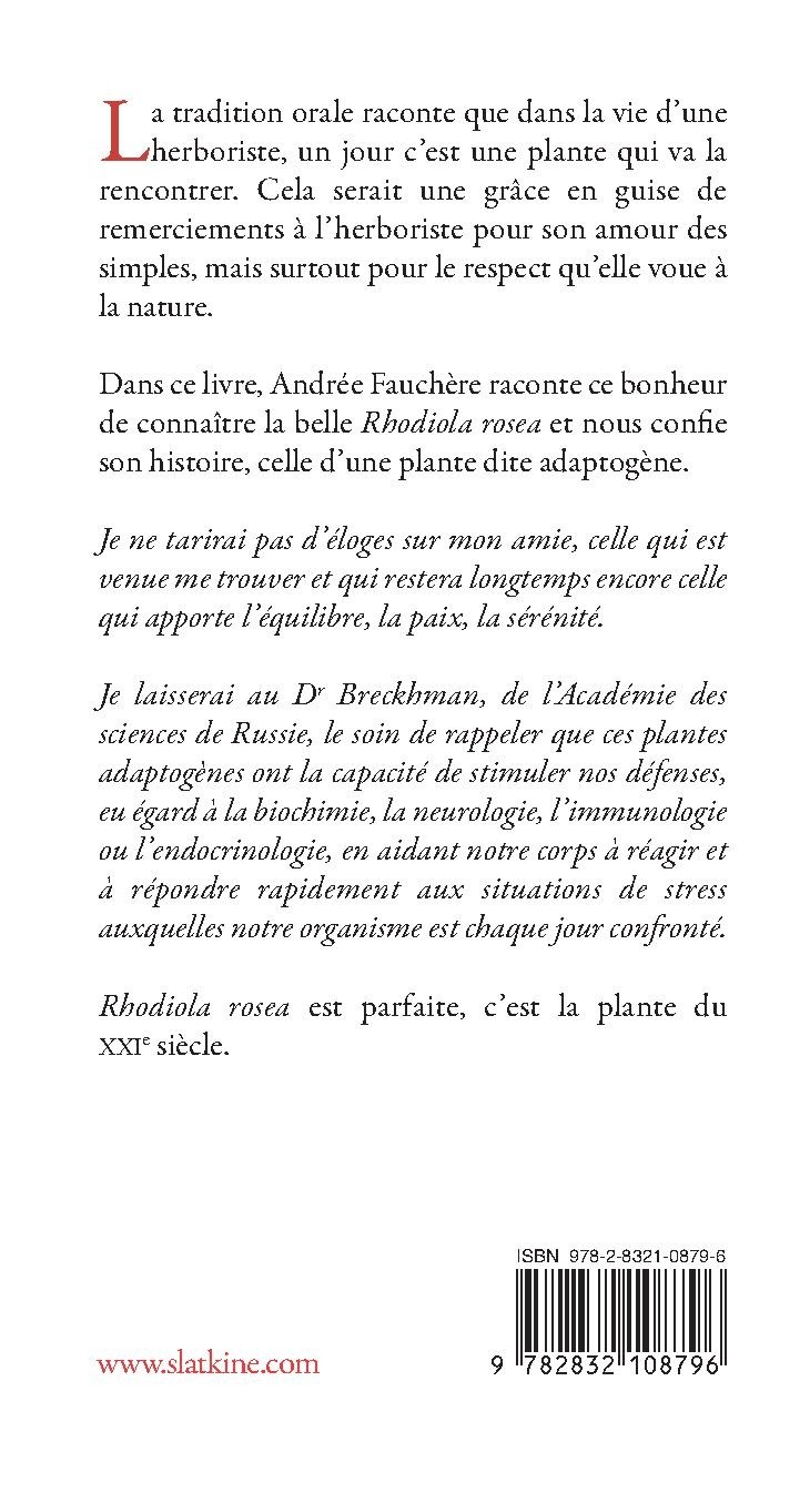 Dans ce livre, Andrée Fauchère raconte ce bonheur de connaître la belle Rhodiola rosea et nous confie son histoire, celle d’une plante dite adaptogène.