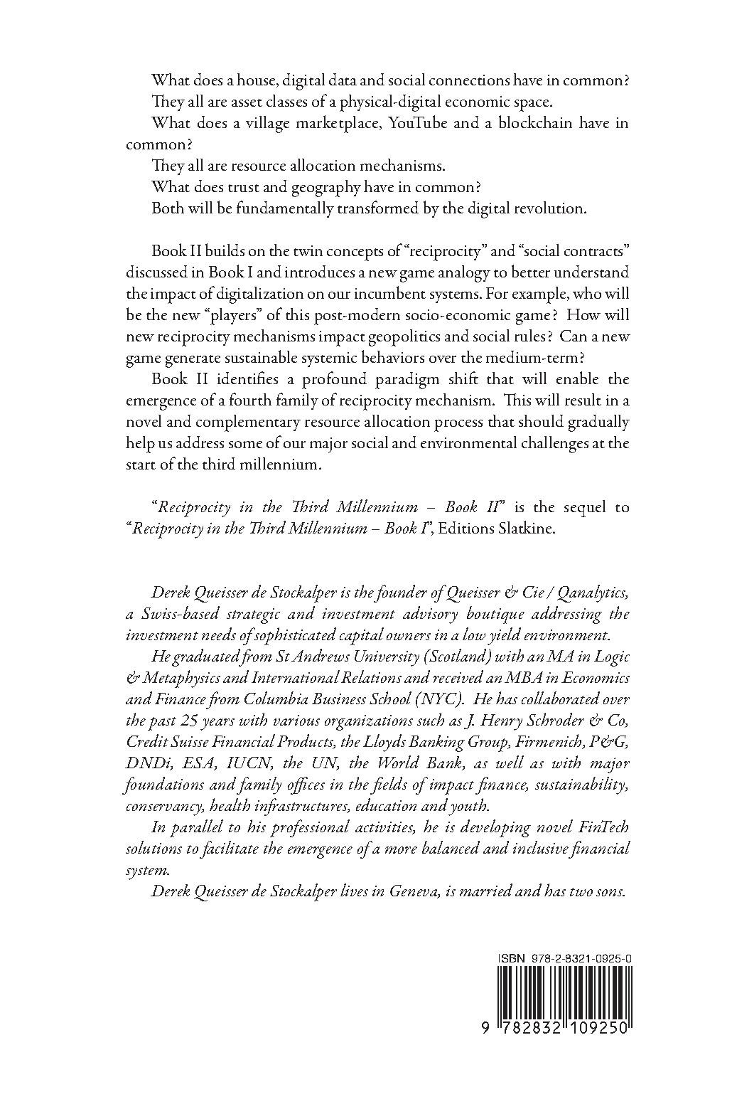 Book II builds on the twin concepts of “reciprocity” and “social contracts” discussed in Book I and introduces a new game analogy to better understand the impact of digitalization on our incumbent systems. For example, who will be the new “players” of this post-modern socio-economic game? How will new reciprocity mechanisms impact geopolitics and social rules? Can new game generate sustainable systemic behaviors over the medium-term?