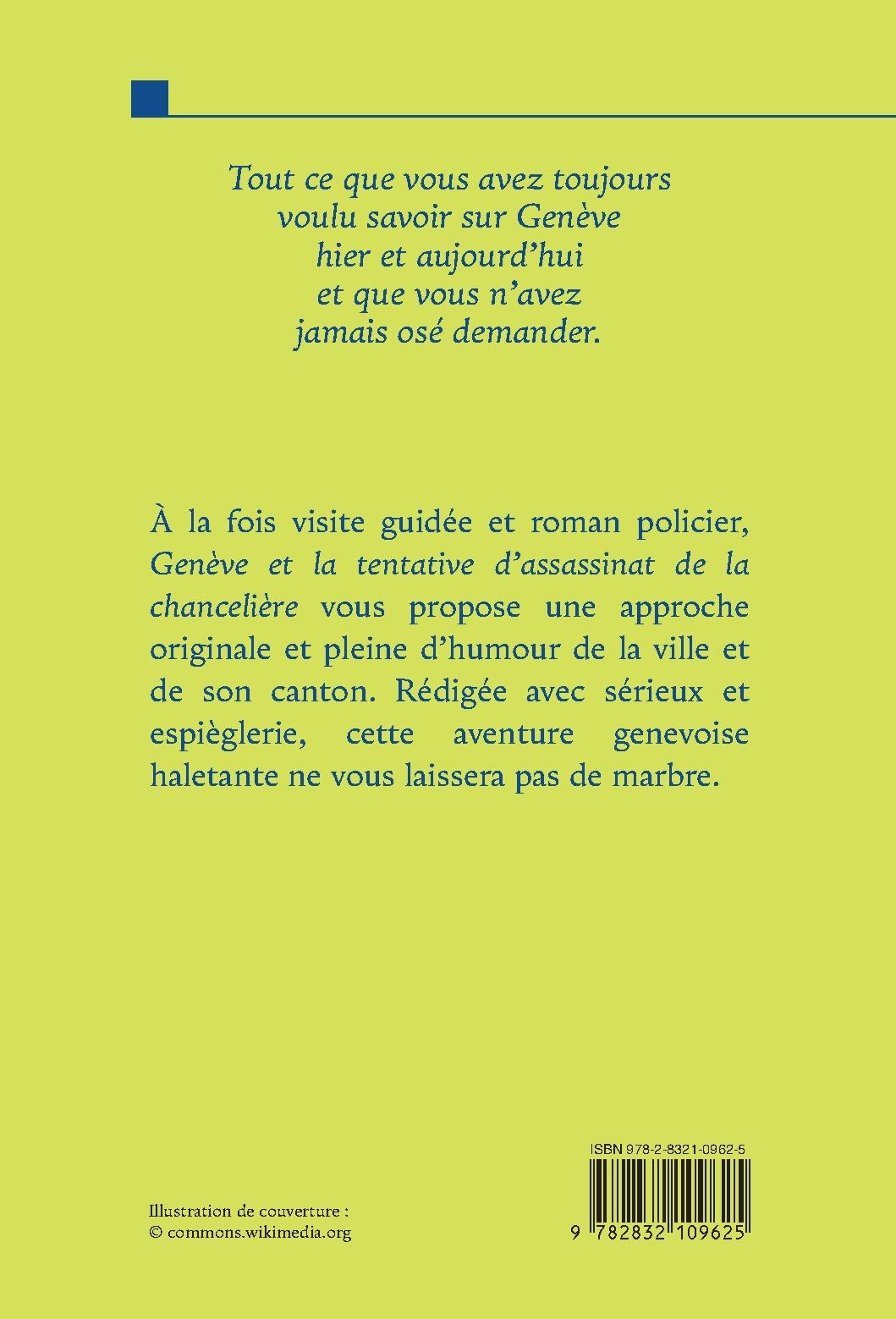À la fois visite guidée et roman policier, Genève et la tentative d’assassinat de la chancelière vous propose une approche originale et pleine d’humour de la ville et de son canton. Rédigée avec sérieux et espièglerie, cette aventure genevoise haletante ne vous laissera pas de marbre.