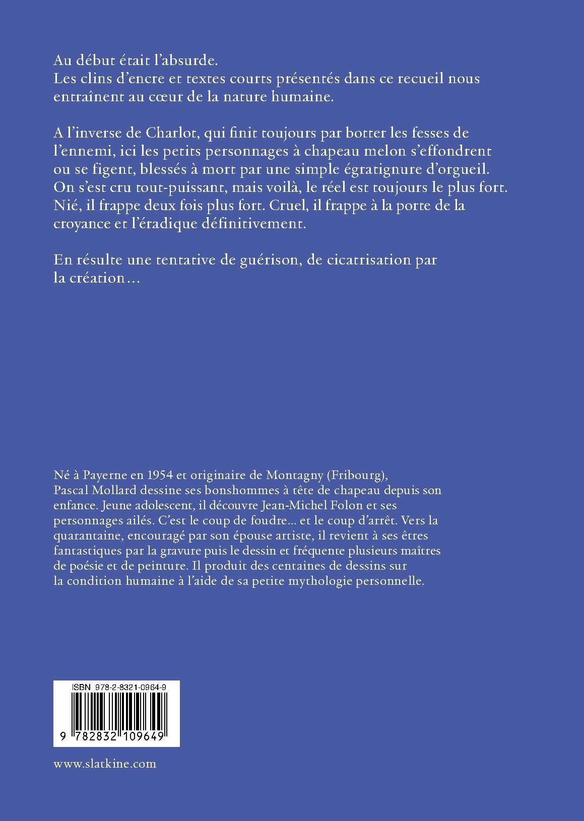 Né à Payerne en 1954 et originaire de Montagny (Fribourg), Pascal Mollard dessine ses bonshommes à tête de chapeau depuis son enfance. Jeune adolescent, il découvre Jean-Michel Folon et ses personnages ailés. C’est le coup de foudre... et le coup d’arrêt. Vers la quarantaine, encouragé par son épouse artiste, il revient à ses êtres fantastiques par la gravure puis le dessin et fréquente plusieurs maîtres de poésie et de peinture. Il produit des centaines de dessins sur la condition humaine à l’aide de sa petite mythologie personnelle.