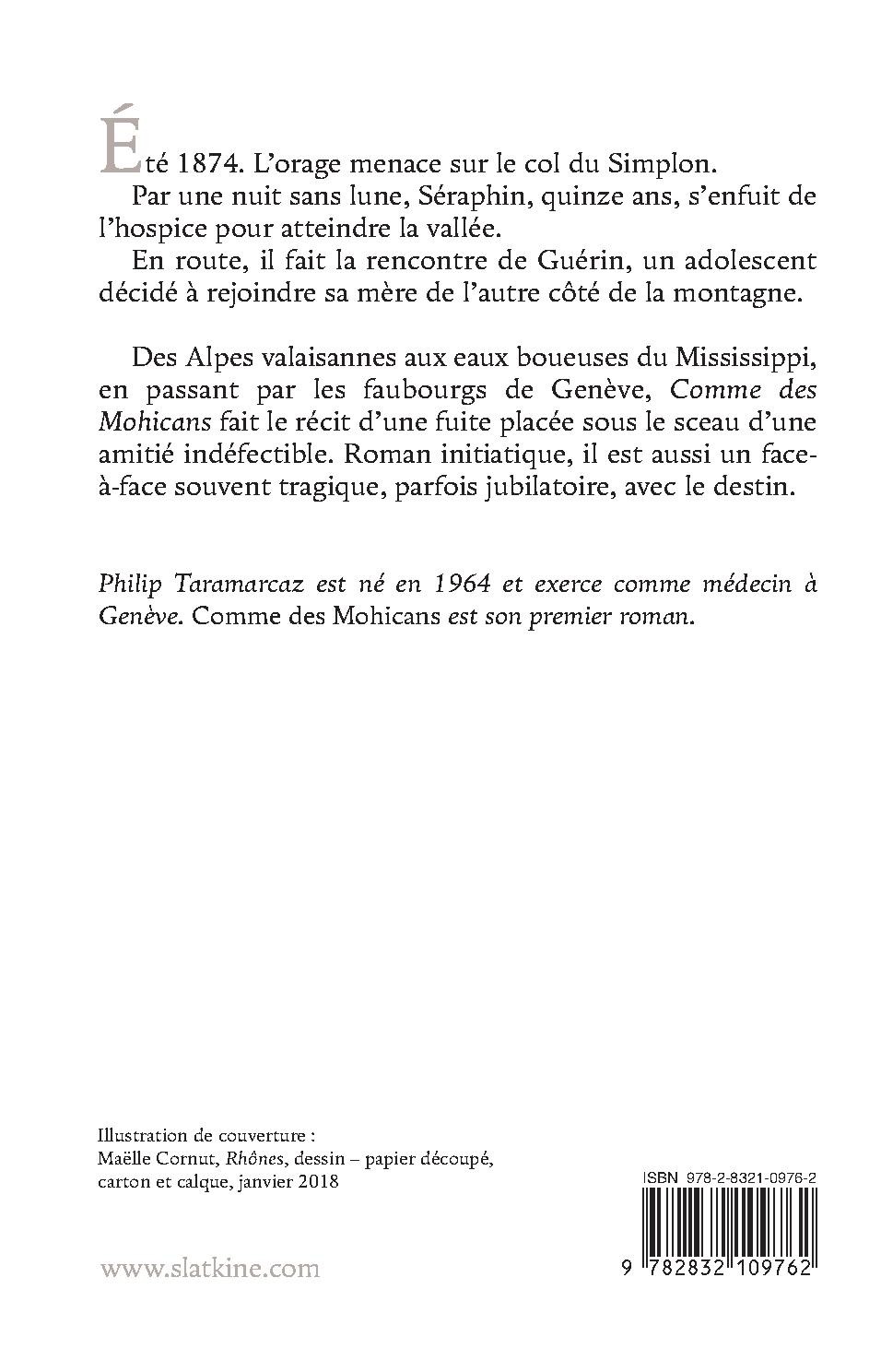 Des Alpes valaisannes aux eaux boueuses du Mississippi, en passant par les faubourgs de Genève, Comme des Mohicans fait le récit d’une fuite placée sous le sceau d’une amitié indéfectible. Roman initiatique, il est aussi un face-à-face souvent tragique, parfois jubilatoire, avec le destin.