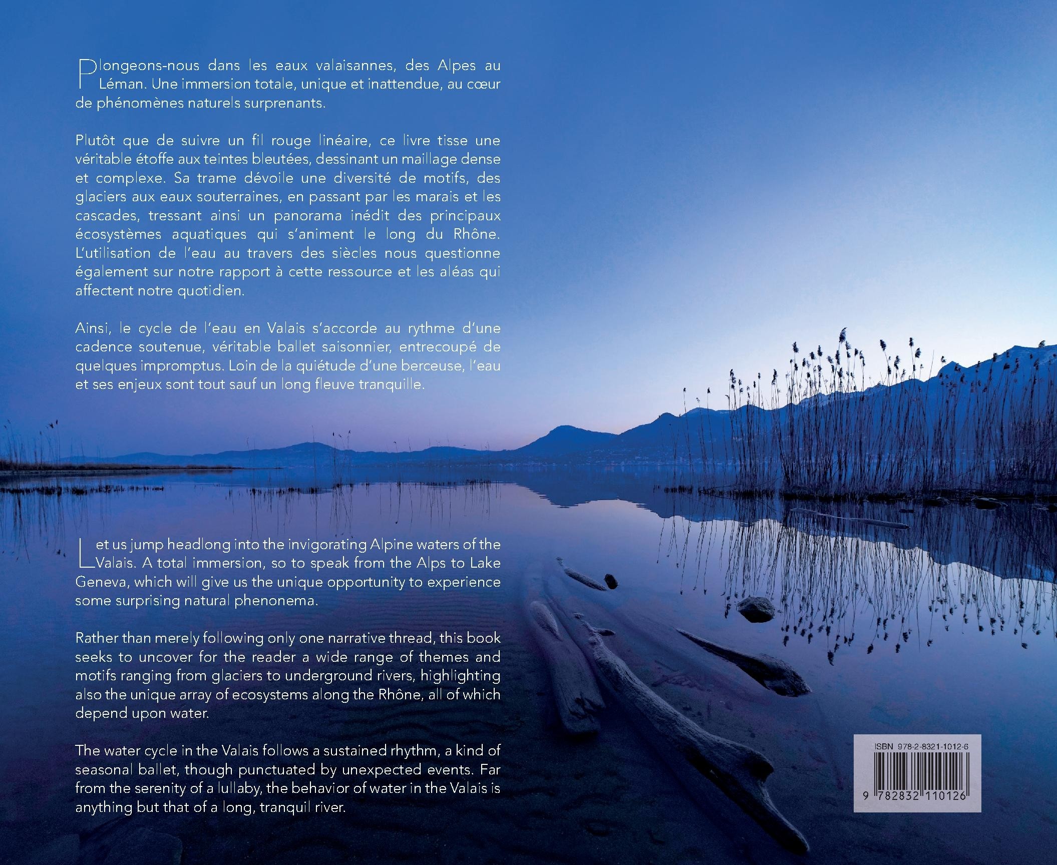 Plutôt que de suivre un fil rouge linéaire, ce livre tisse une véritable étoffe aux teintes bleutées, dessinant un maillage dense et complexe. Sa trame dévoile une diversité de motifs, des glaciers aux eaux souterraines, en passant par les marais et les cascades, tressant ainsi un panorama inédit des principaux écosystèmes aquatiques qui s’animent le long du Rhône. L’utilisation de l’eau au travers des siècles nous questionne également sur notre rapport à cette ressource et les aléas qui affectent notre quotidien.