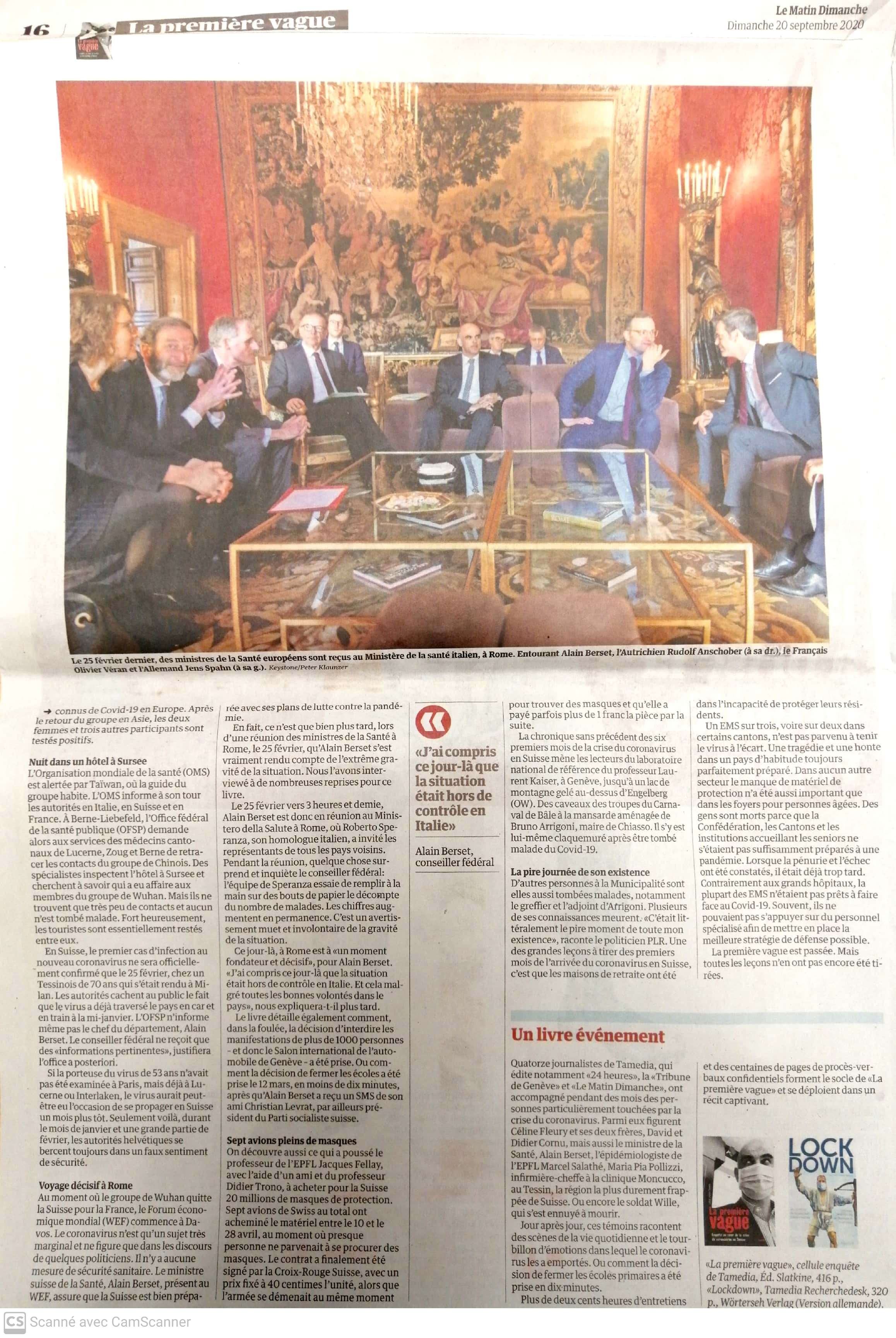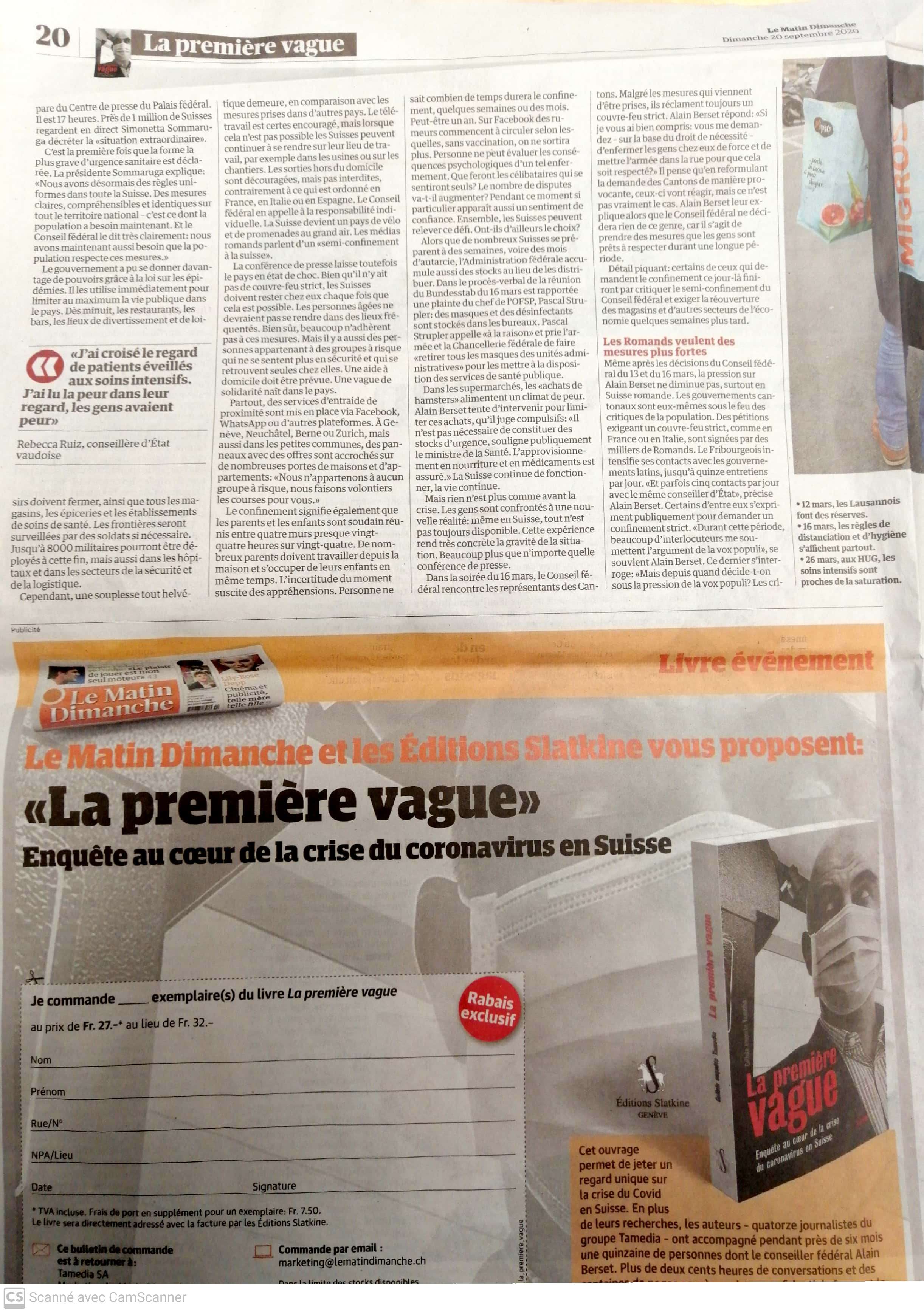 Cet ouvrage permet de jeter un regard unique sur la crise du coronavirus en Suisse. En plus de leurs recherches, les auteurs – quatorze journalistes d’investigation – ont accompagné pendant près de six mois une quinzaine de personnes, dont le conseiller fédéral Alain Berset, l’épidémiologiste de l’EPFL Marcel Salathé, Maria Pia Pollizzi, infirmière cheffe à la clinique la plus durement