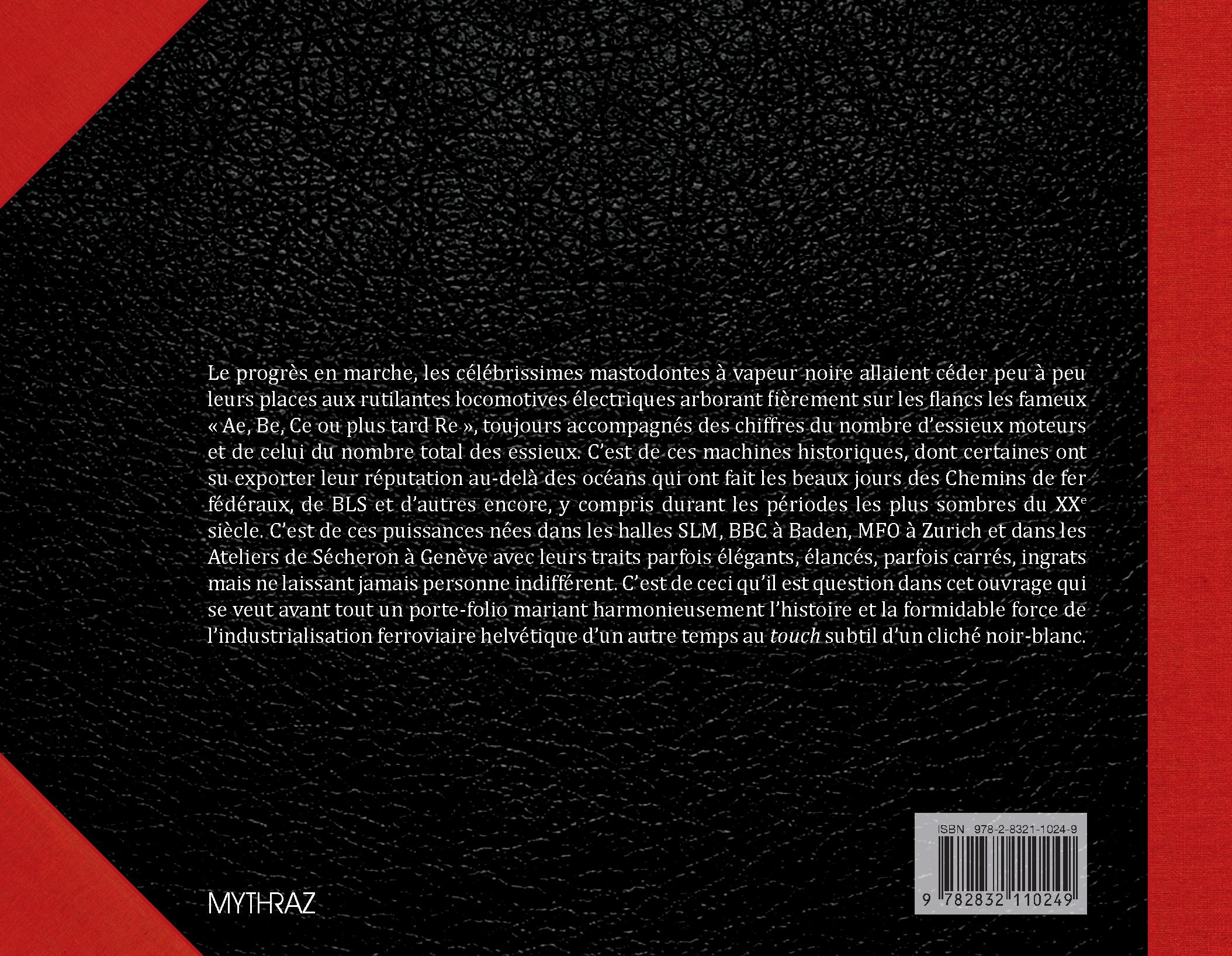 Le progrès en marche, les célébrissimes mastodontes à vapeur noire allaient céder peu à peu leurs places aux rutilantes locomotives électriques arborant fièrement sur les flancs les fameux « Ae, Be, Ce ou plus tard Re », toujours accompagnés des chiffres du nombre d’essieux moteurs et de celui du nombre total des essieux. C’est de ces machines historiques, dont certaines ont su exporter leur réputation au-delà des océans qui ont fait les beaux jours des Chemins de fer fédéraux, de BLS et d’autres encore, y compris durant les périodes les plus sombres du XXe siècle. C’est de ces puissances nées dans les halles SLM, BBC à Baden, MFO à Zurich et dans les Ateliers de Sécheron à Genève avec leurs traits parfois élégants, élancés, parfois carrés, ingrats mais ne laissant jamais personne indifférent. C’est de ceci qu’il est question dans cet ouvrage qui se veut avant tout un porte-folio mariant harmonieusement l’histoire et la formidable force de l’industrialisation ferroviaire helvétique d’un autre temps au touch subtil d’un cliché noir-blanc.