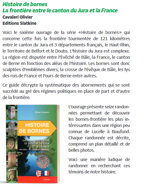 Frontière à l’histoire féconde, délimitation à la densité d’abornement impressionnante, confins du benjamin de la Confédération suisse, la limite internationale entre le canton du Jura et la France possède de nombreux atouts. D’une part, elle découpe des contrées peu visitées au charme intact. D’autre part, elle déroule sur son pourtour plusieurs bornes-frontière historiques comme autant de témoins gravés des étapes de la