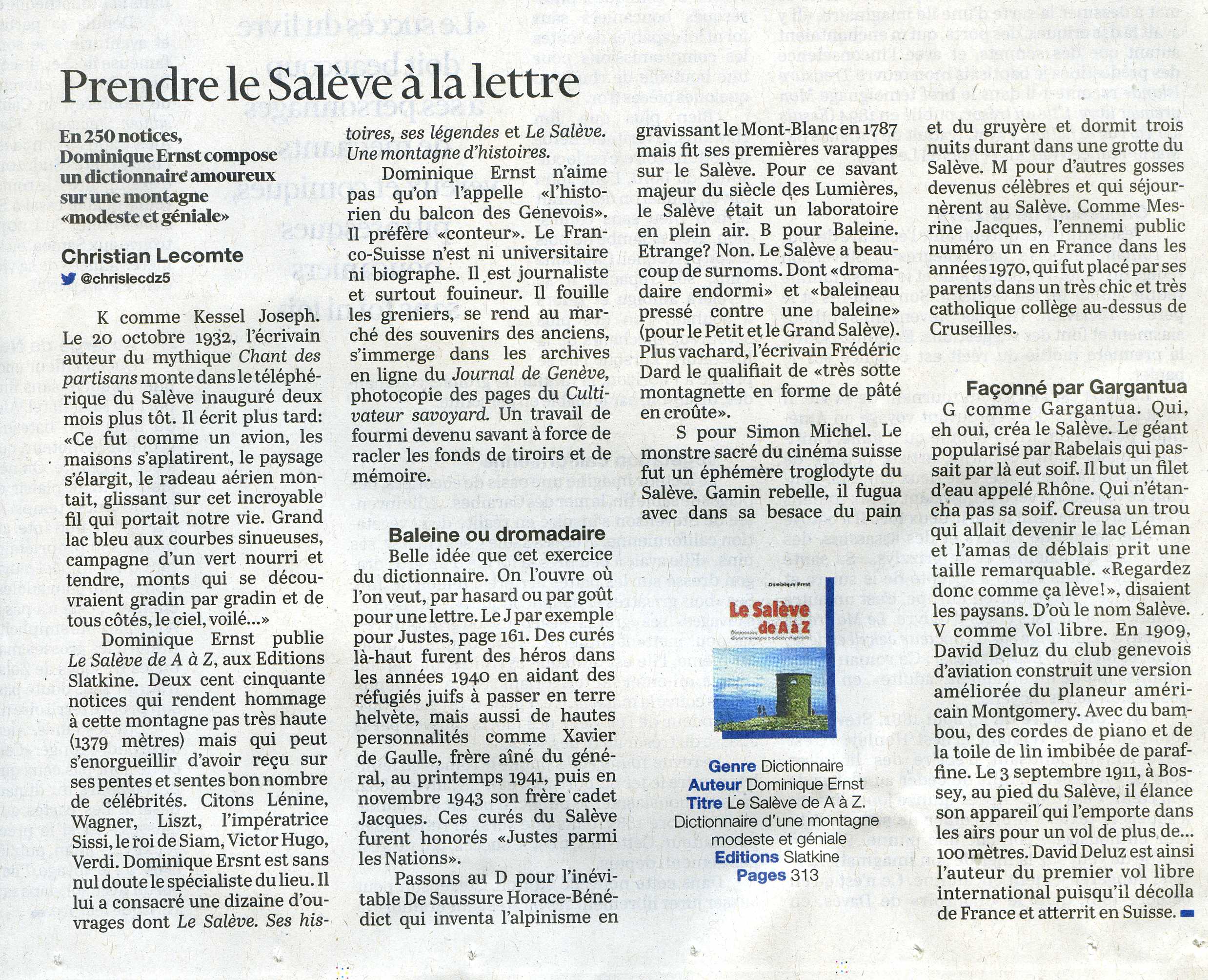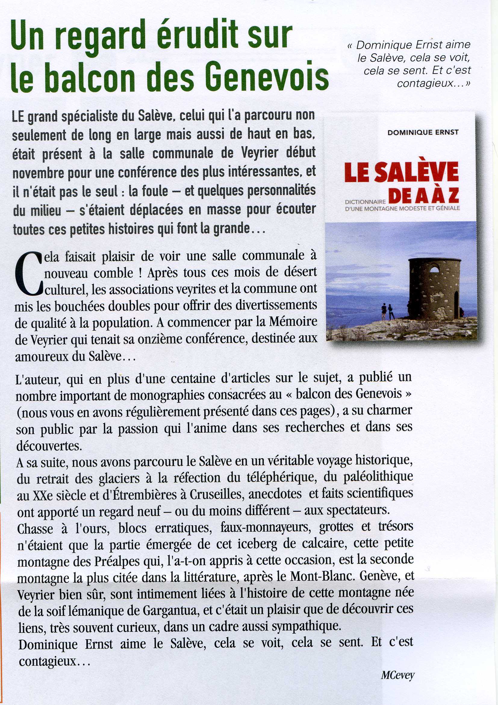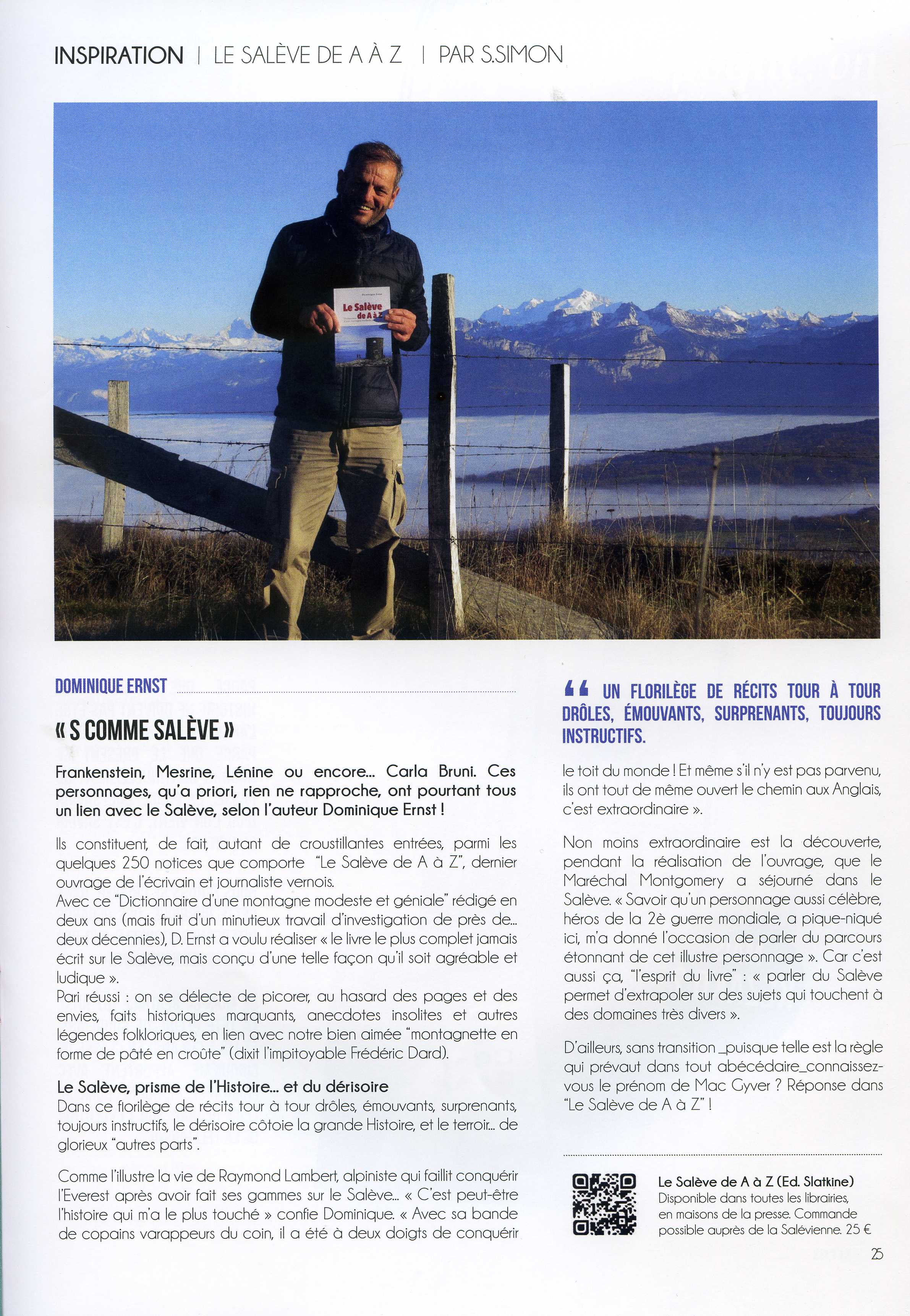 Dominique Ernst est journaliste et écrivain spécialisé dans l’histoire locale et le patrimoine du Genevois haut-savoyard. Il est l’auteur de centaines d’articles sur ces sujets et de huit ouvrages, notamment consacrés au Salève et au Vuache. Avec Le Salève de A à Z – Dictionnaire d’une montagne modeste et géniale, fruit d’une vingtaine d’années de recherches et de travail, il signe l’un des livres les plus complets jamais publiés sur ce massif singulier.