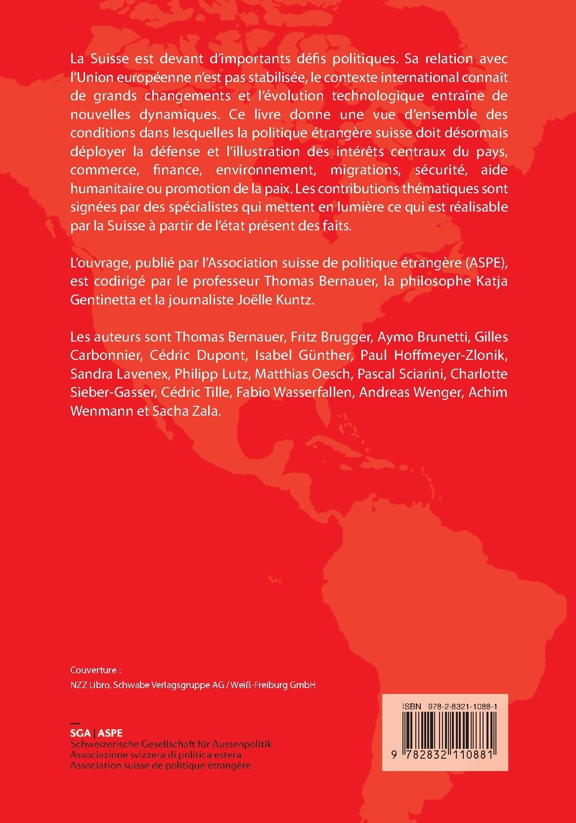 l’Union européenne n’est pas stabilisée, le contexte international connaît de grands changements et l’évolution technologique entraîne de nouvelles dynamiques. Ce livre donne une vue d’ensemble des conditions dans lesquelles la politique étrangère suisse doit désormais déployer la défense et l’illustration des intérêts centraux du pays, commerce, finance, environnement, migrations, sécurité, aide humanitaire ou promotion de la paix. Les contributions thématiques sont signées par des spécialistes qui mettent en lumière ce qui est réalisable par la Suisse à partir de l’état présent des faits.