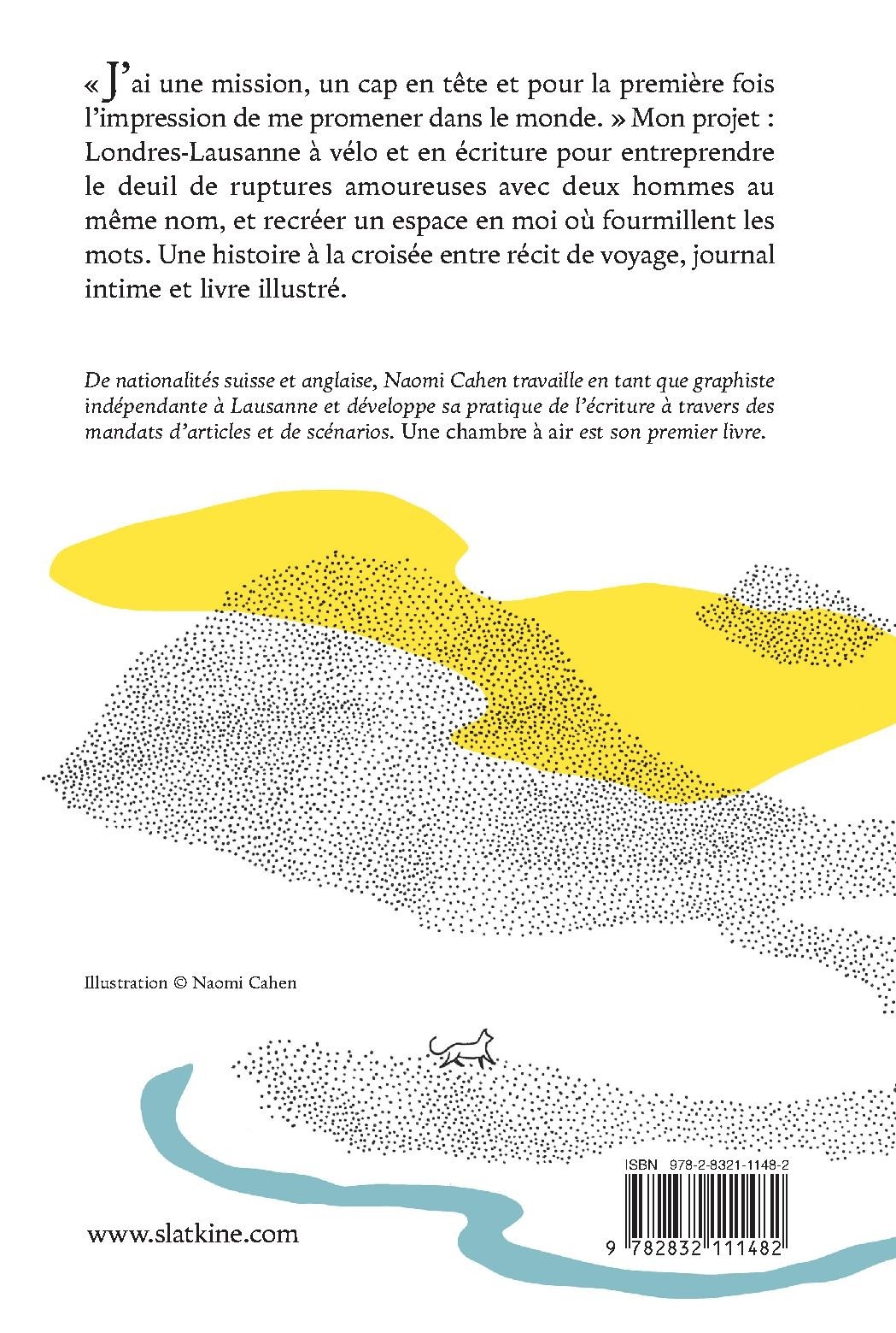 De nationalités suisse et anglaise, Naomi Cahen travaille en tant que graphiste indépendante à Lausanne et développe sa pratique de l’écriture à travers des mandats d’articles et de scénarios. Une chambre à air est son premier livre.