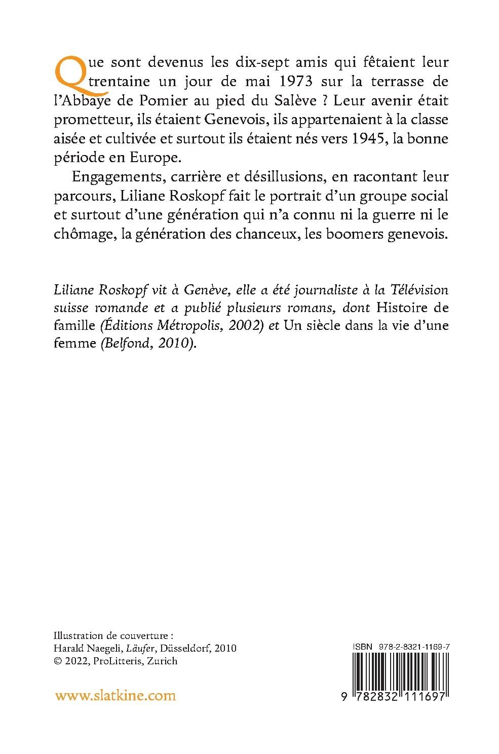 Que sont devenus les dix-sept amis qui fêtaient leur trentaine un jour de mai 1973 sur la terrasse de l’Abbaye de Pomier au pied du Salève ? Leur avenir était prometteur, ils étaient Genevois, ils appartenaient à la classe aisée et cultivée et surtout ils étaient nés vers 1945, la bonne période en Europe.