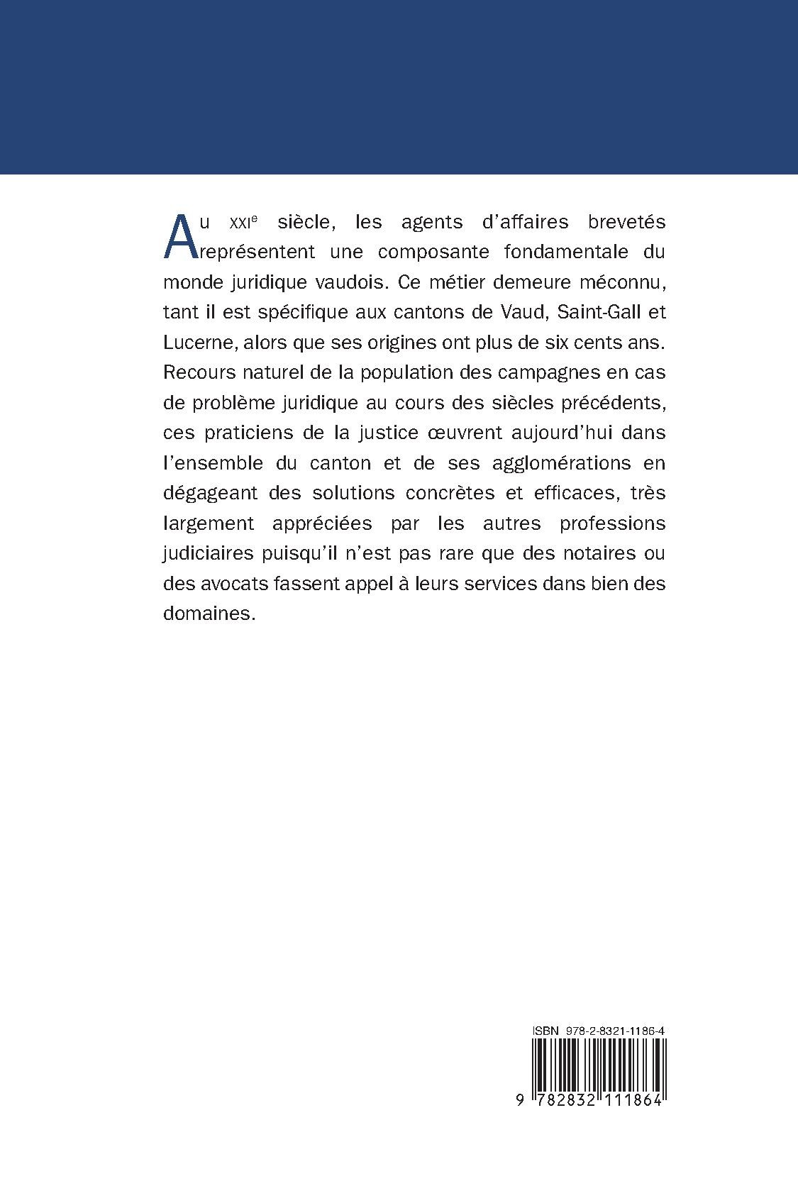 Au XXIe siècle, les agents d’affaires brevetés représentent une composante fondamentale du monde juridique vaudois. Ce métier demeure méconnu, tant il est spécifique aux cantons de Vaud, Saint- Gall et Lucerne, alors que ses origines ont plus de six cents ans. Recours naturel de la population des campagnes en cas de problème juridique au cours des siècles précédents, ces praticiens de la justice oeuvrent aujourd’hui dans l’ensemble du canton et de ses agglomérations en dégageant des solutions concrètes et efficaces, très largement appréciées par les autres professions judiciaires puisqu’il n’est pas rare que des notaires ou des avocats fassent appel à leurs services dans bien des domaines.