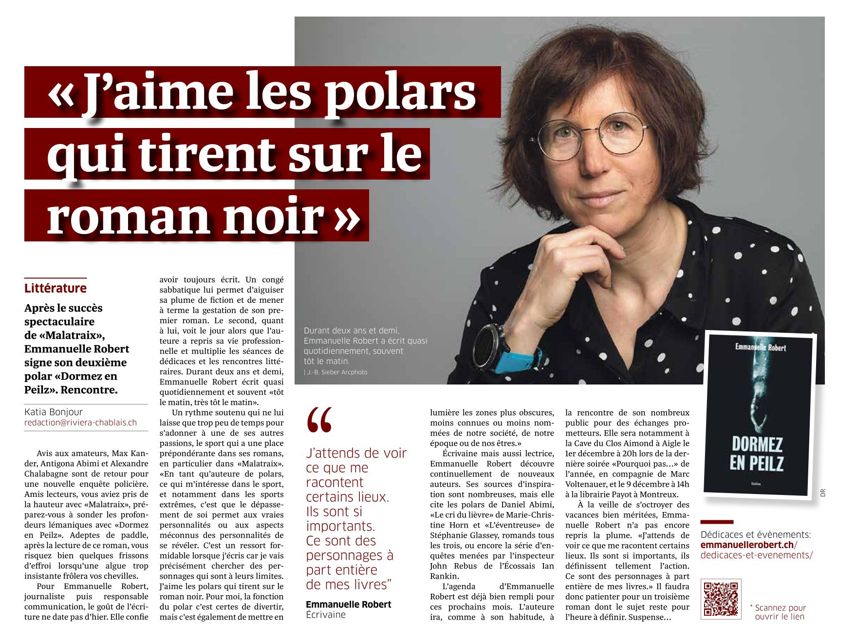 Née en 1975 à La Chaux-de-Fonds, Emmanuelle Robert a grandi à Montreux. Journaliste, elle a travaillé pour diverses organisations non gouvernementales avant de se tourner vers la communication. Passionnée de polars, il lui arrive de plonger en eau douce. Retrouvez-la sur emmanuellerobert.ch.