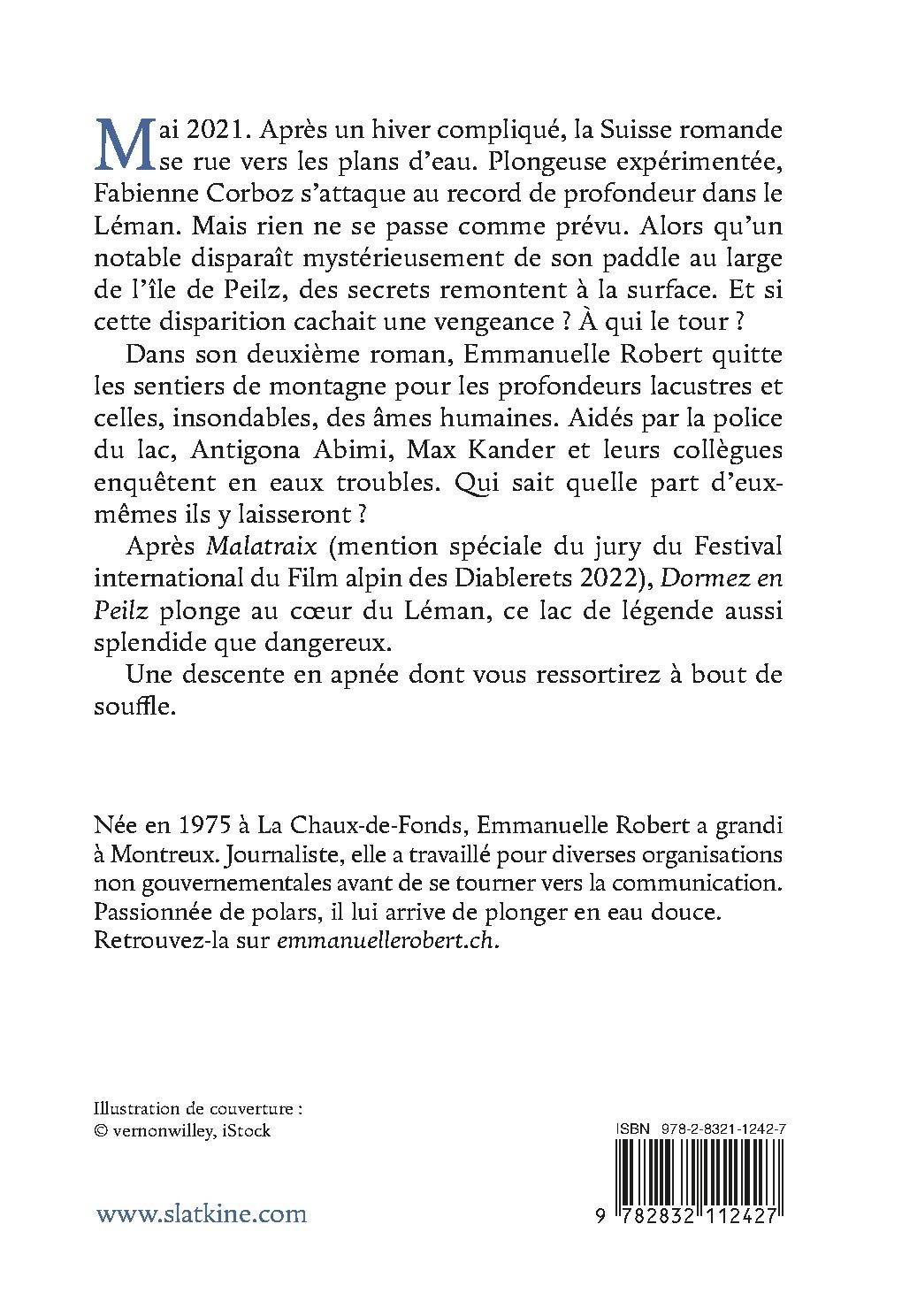 Mai 2021. Après un hiver compliqué, la Suisse romande se rue vers les plans d’eau. Plongeuse expérimentée, Fabienne Corboz s’attaque au record de profondeur dans le Léman. Mais rien ne se passe comme prévu. Alors qu’un notable disparaît mystérieusement de son paddle au large de l’île de Peilz, des secrets remontent à la surface. Et si cette disparition cachait une vengeance ? À qui le tour ?