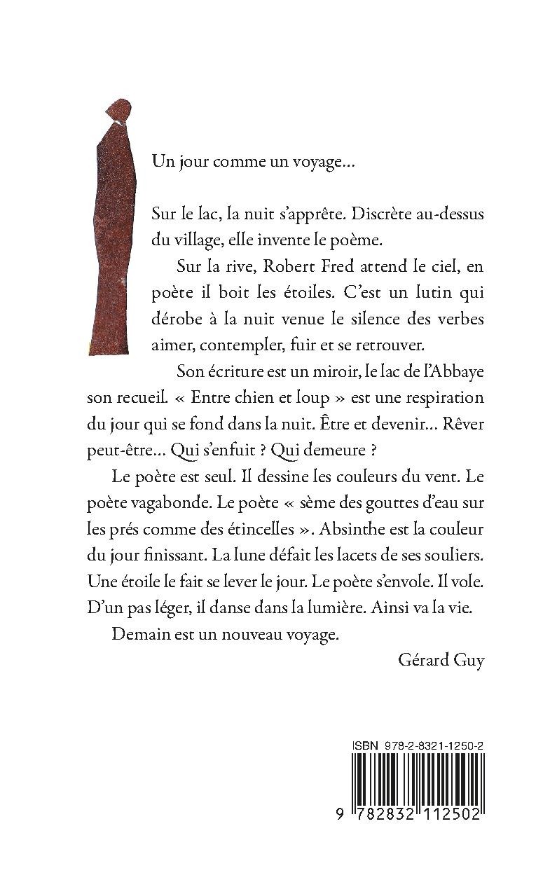 Son écriture est un miroir, le lac de l’Abbaye son recueil. « Entre chien et loup » est une respiration du jour qui se fond dans la nuit. Être et devenir… Rêver peut-être… Qui s’enfuit ? Qui demeure ?