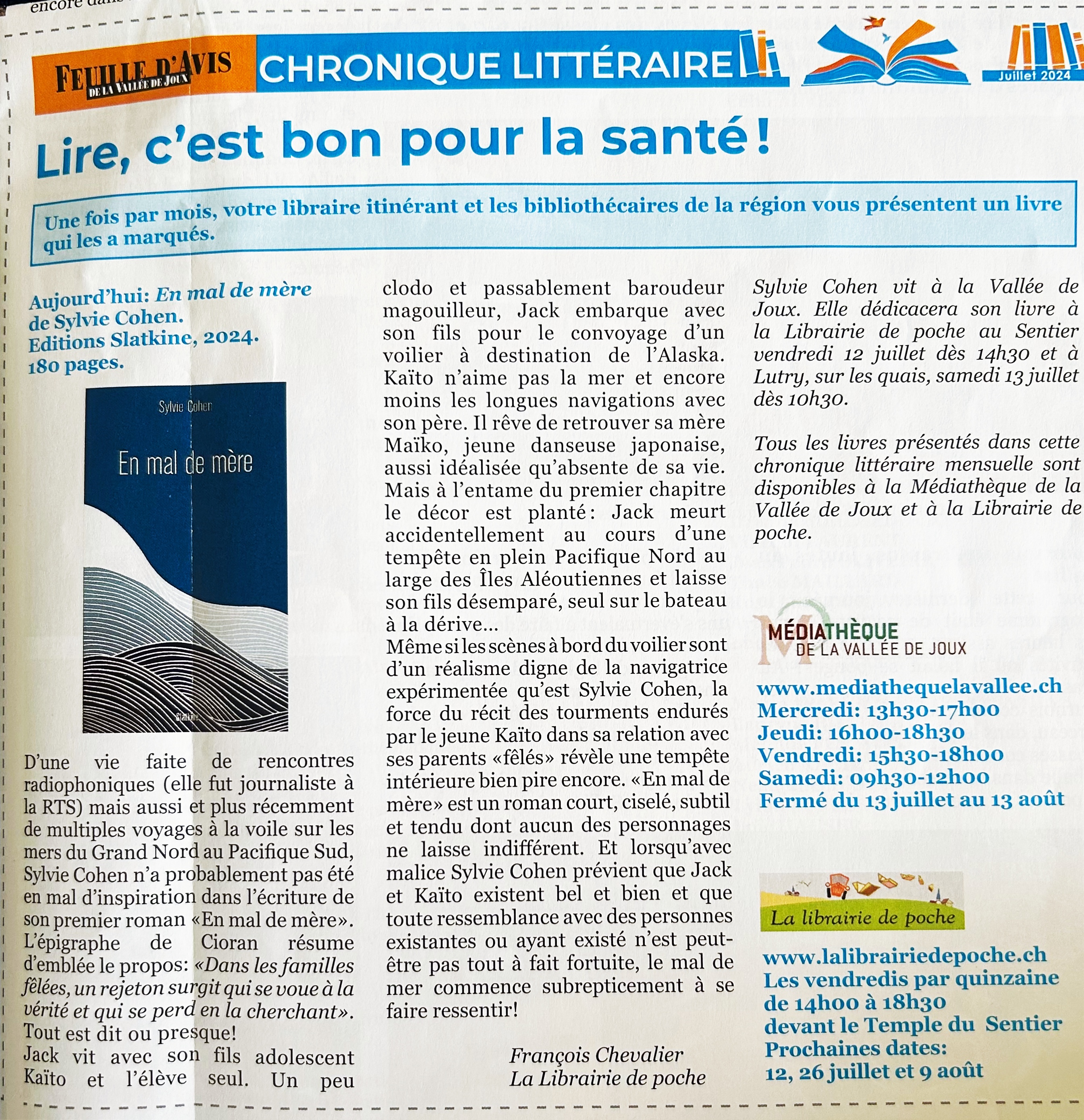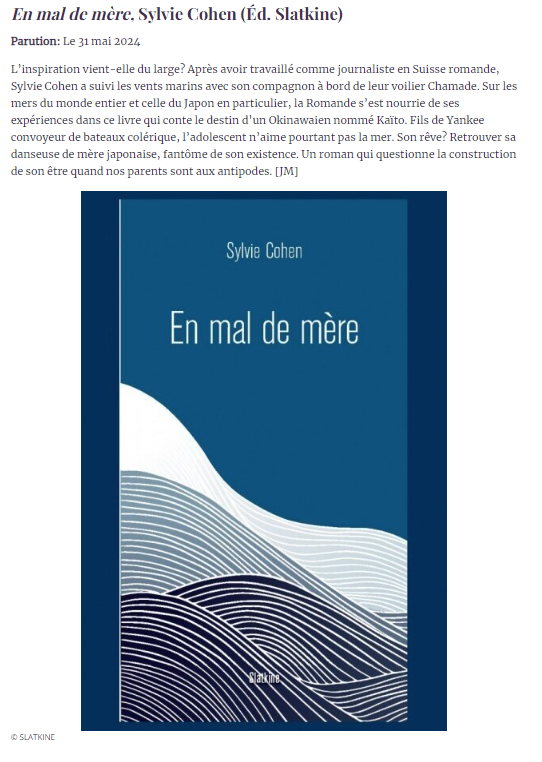 Après avoir mené une carrière de journaliste en Suisse romande, Sylvie Cohen a largué les amarres pour sillonner les mers avec son compagnon, à bord de leur voilier Chamade. Du Grand Nord au Pacifique sud, en passant par le Japon, elle s’est nourrie de découvertes et de rencontres qui lui ont inspiré ce livre.
