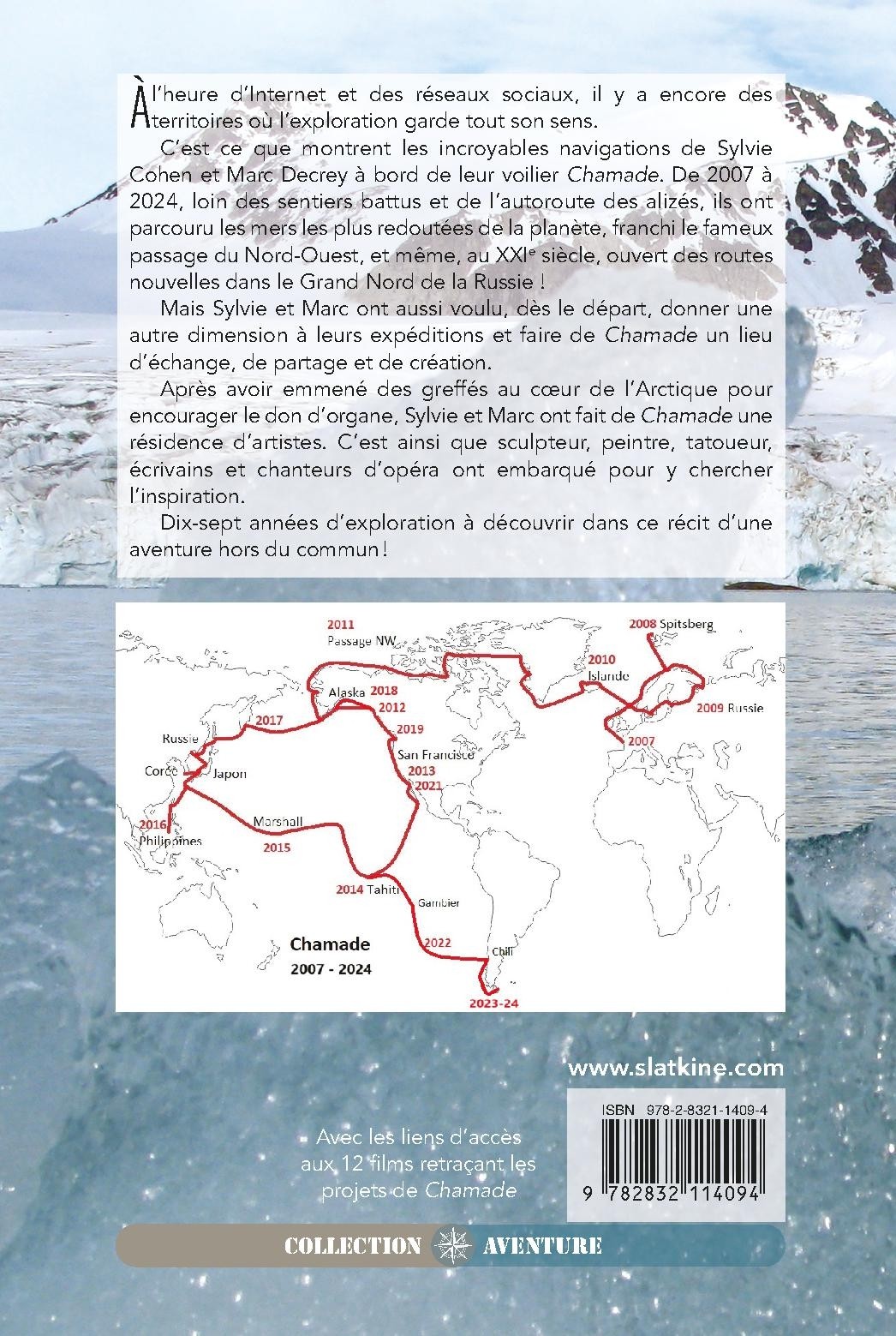 Après avoir emmené des greffés au cœur de l’Arctique pour encourager le don d’organes, Sylvie et Marc ont fait de Chamade une résidence d’artistes. C’est ainsi que sculpteur, peintre, tatoueur, écrivains et chanteurs d’opéra ont embarqué pour y chercher l’inspiration. Dix-sept années d’exploration à découvrir dans ce récit d’une aventure hors du commun !