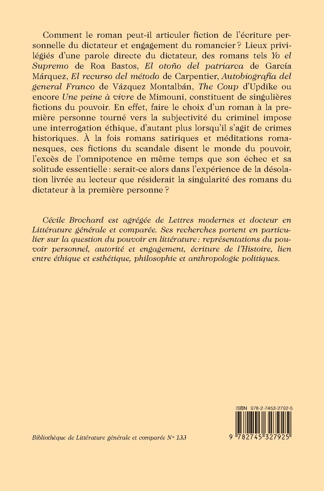 Comment le roman peut-il articuler fiction de l’écriture personnelle du dictateur et engagement du romancier ? Lieux privilégiés d’une parole directe du dictateur, des romans tels Yo el Supremo de Roa Bastos, El otoño del patriarca de García Márquez, El recurso del método de Carpentier, Autobiografía del general Franco de Vázquez Montalbán, The Coup d’Updike ou encore Une peine à vivre de Mimouni, constituent de singulières fictions du pouvoir. En effet, faire le choix d’un roman à la première personne tourné vers la subjectivité du criminel impose une interrogation éthique, d’autant plus lorsqu’il s’agit de crimes historiques. À la fois romans satiriques et méditations romanesques, ces fictions du scandale disent le monde du pouvoir, l’excès de l’omnipotence en même temps que son échec et sa solitude essentielle : serait-ce alors dans l’expérience de la désolation livrée au lecteur que résiderait la singularité des romans du dictateur à la première personne ?