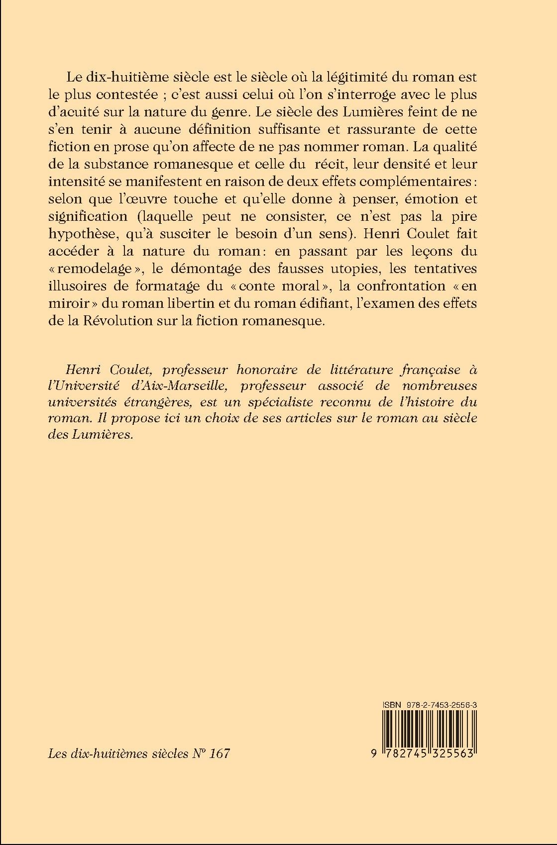fiction en prose qu’on affecte de ne pas nommer roman. La qualité de la substance romanesque et celle du récit, leur densité et leur intensité se manifestent en raison de deux effets complémentaires: selon que l’oeuvre touche et qu’elle donne à penser, émotion et signification (laquelle peut ne consister, ce n’est pas la pire hypothèse, qu’à susciter le besoin d’un sens). Henri Coulet fait accéder à la nature du roman : en passant par les leçons du « remodelage », le démontage des fausses utopies, les tentatives illusoires de formatage du « conte moral », la confrontation « en miroir » du roman libertin et du roman édifiant, l’examen des effets de la Révolution sur la fiction romanesque.