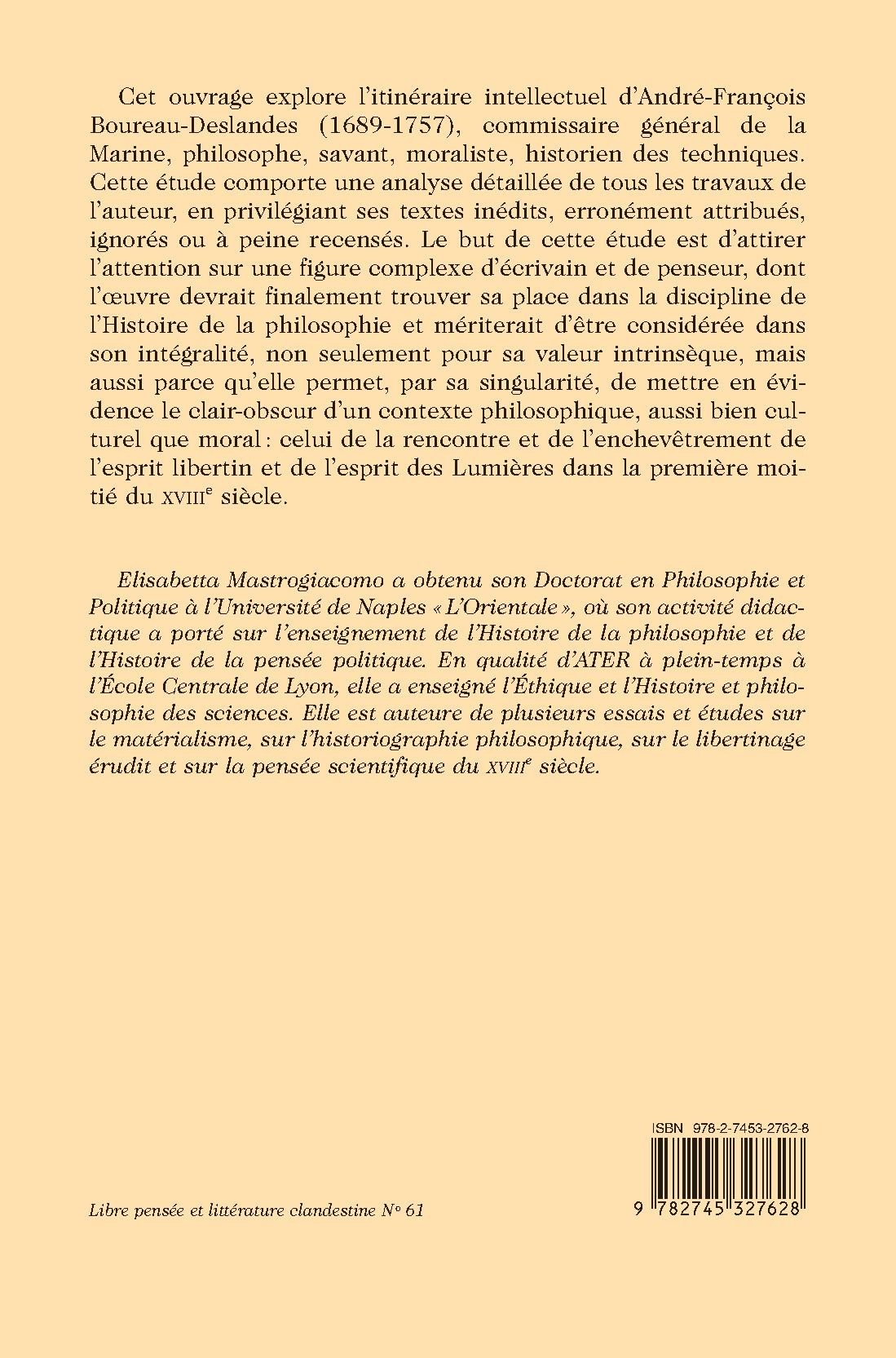 André-François Boureau-Deslandes (1689-1757). Préface de Gianni Paganini