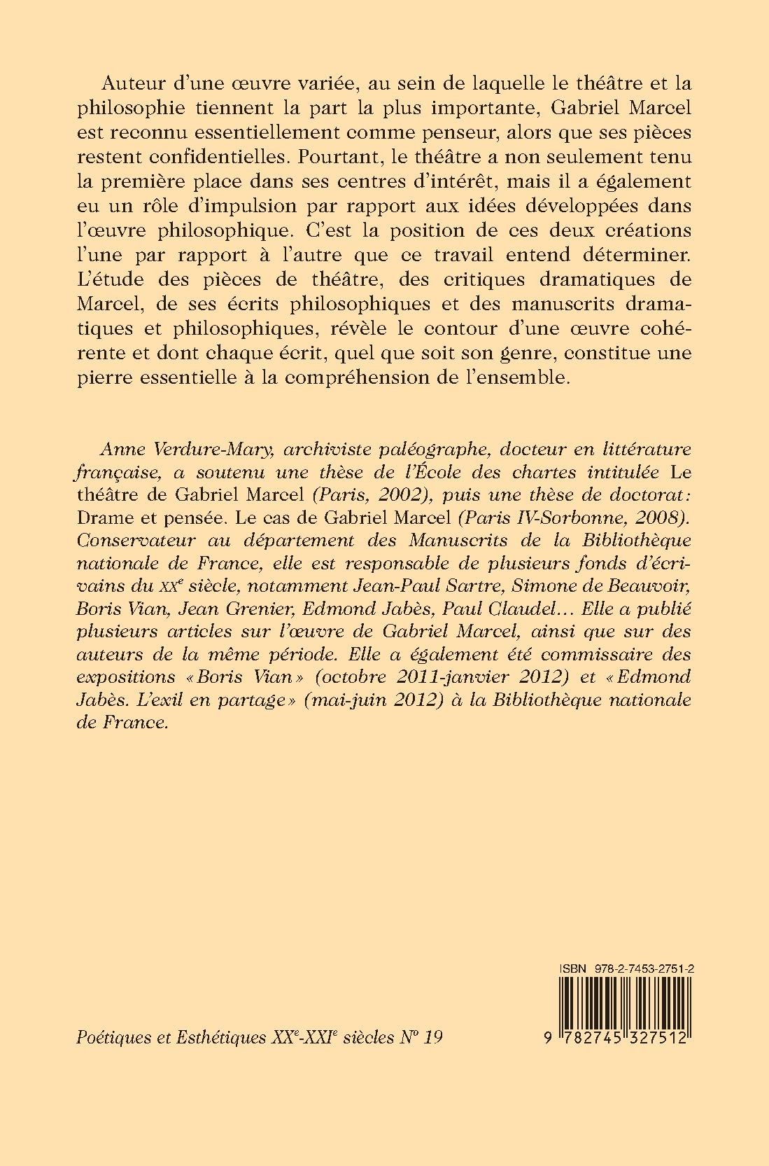 Auteur d’une oeuvre variée, au sein de laquelle le théâtre et la philosophie tiennent la part la plus importante, Gabriel Marcel est reconnu essentiellement comme penseur, alors que ses pièces restent confidentielles. Pourtant, le théâtre a non seulement tenu la première place dans ses centres d’intérêt, mais il a également eu un rôle d’impulsion par rapport aux idées développées dans l’oeuvre philosophique. C’est la position de ces deux créations l’une par rapport à l’autre que ce travail entend déterminer. L’étude des pièces de théâtre, des critiques dramatiques de Marcel, de ses écrits philosophiques et des manuscrits pramatiques et philosophiques, révèle le contour d’une oeuvre cohérente et dont chaque écrit, quel que soit son genre, constitue une pierre essentielle à la compréhension de l’ensemble.