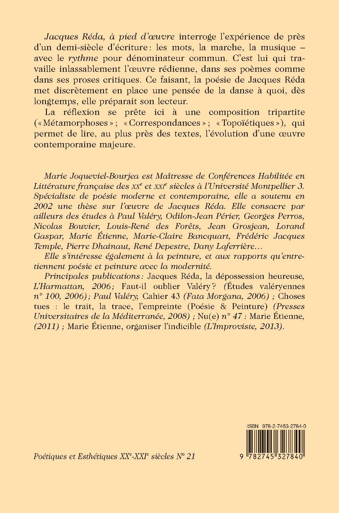 Jacques Réda, à pied d’oeuvre interroge l’expérience de près d’un demi-siècle d’écriture : les mots, la marche, la musique – avec le rythme pour dénominateur commun. C’est lui qui travaille inlassablement l’oeuvre rédienne, dans ses poèmes comme dans ses proses critiques. Ce faisant, la poésie de Jacques Réda met discrètement en place une pensée de la danse à quoi, dès longtemps, elle préparait son lecteur.